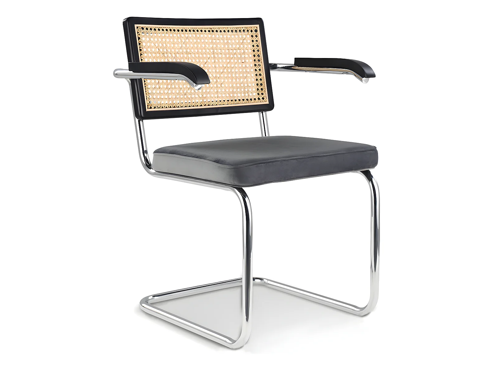 Silla de Comedor con Reposabrazos - Tapizado en Terciopelo - Madera y Ratán - Hyre