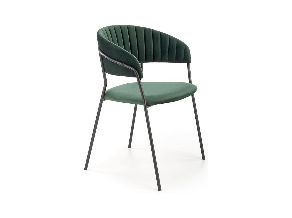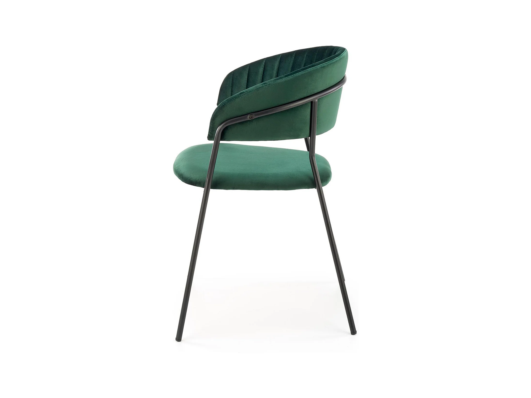 Silla de terciopelo verde con respaldo redondeado y patas de metal negro ERIKA