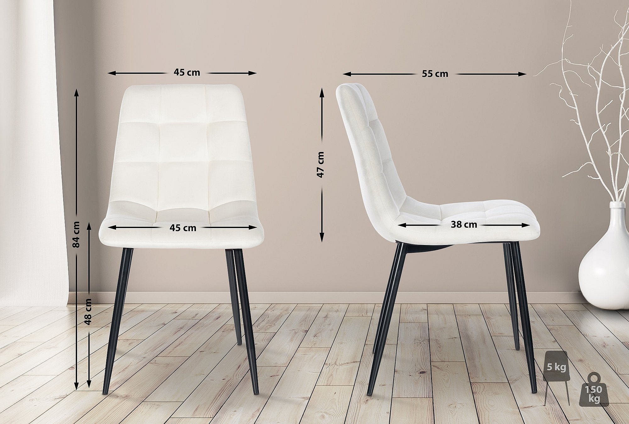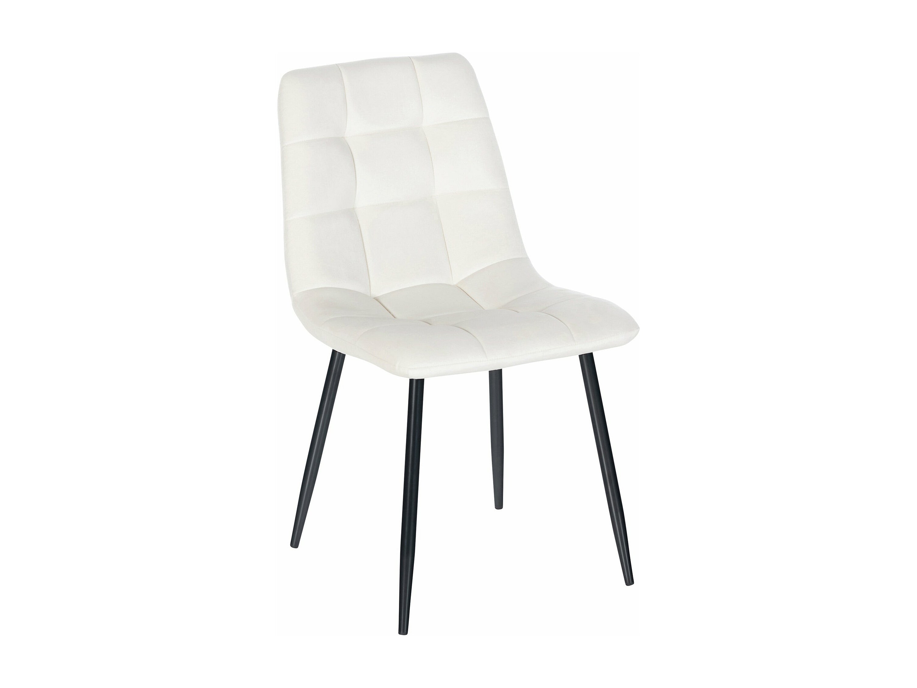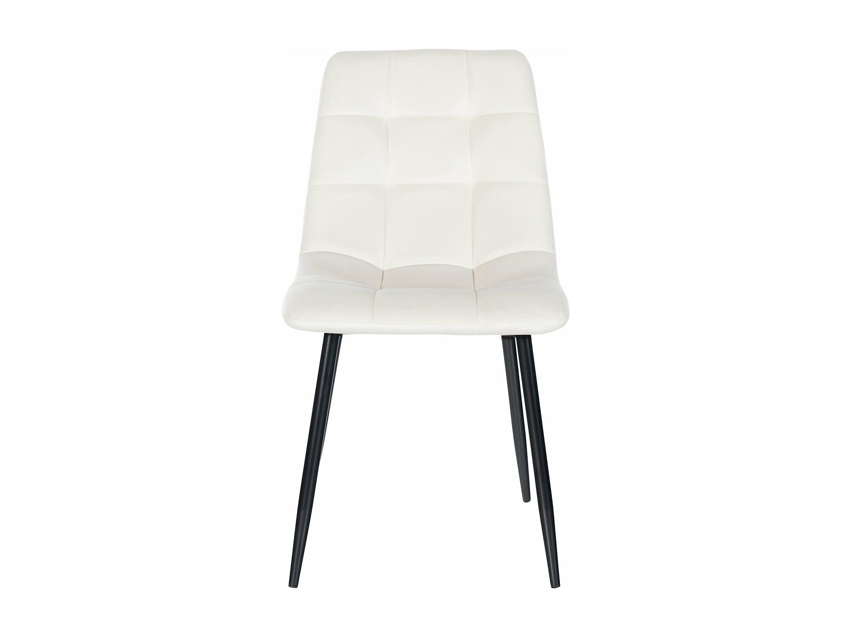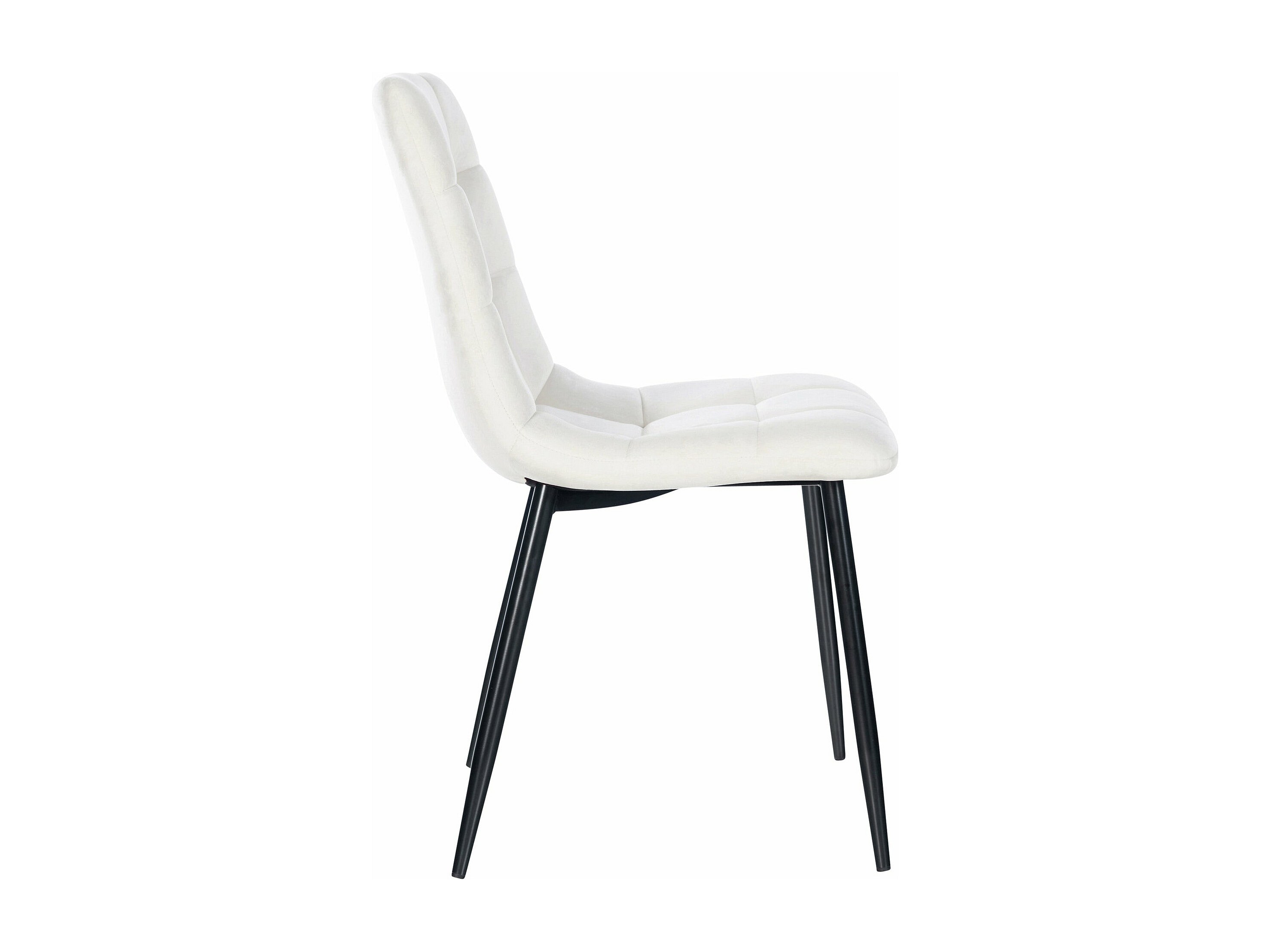 Silla de comedor costuras decorativas en forma de cuadros en terciopelo blanco crema pie metal negro mate M10_002000