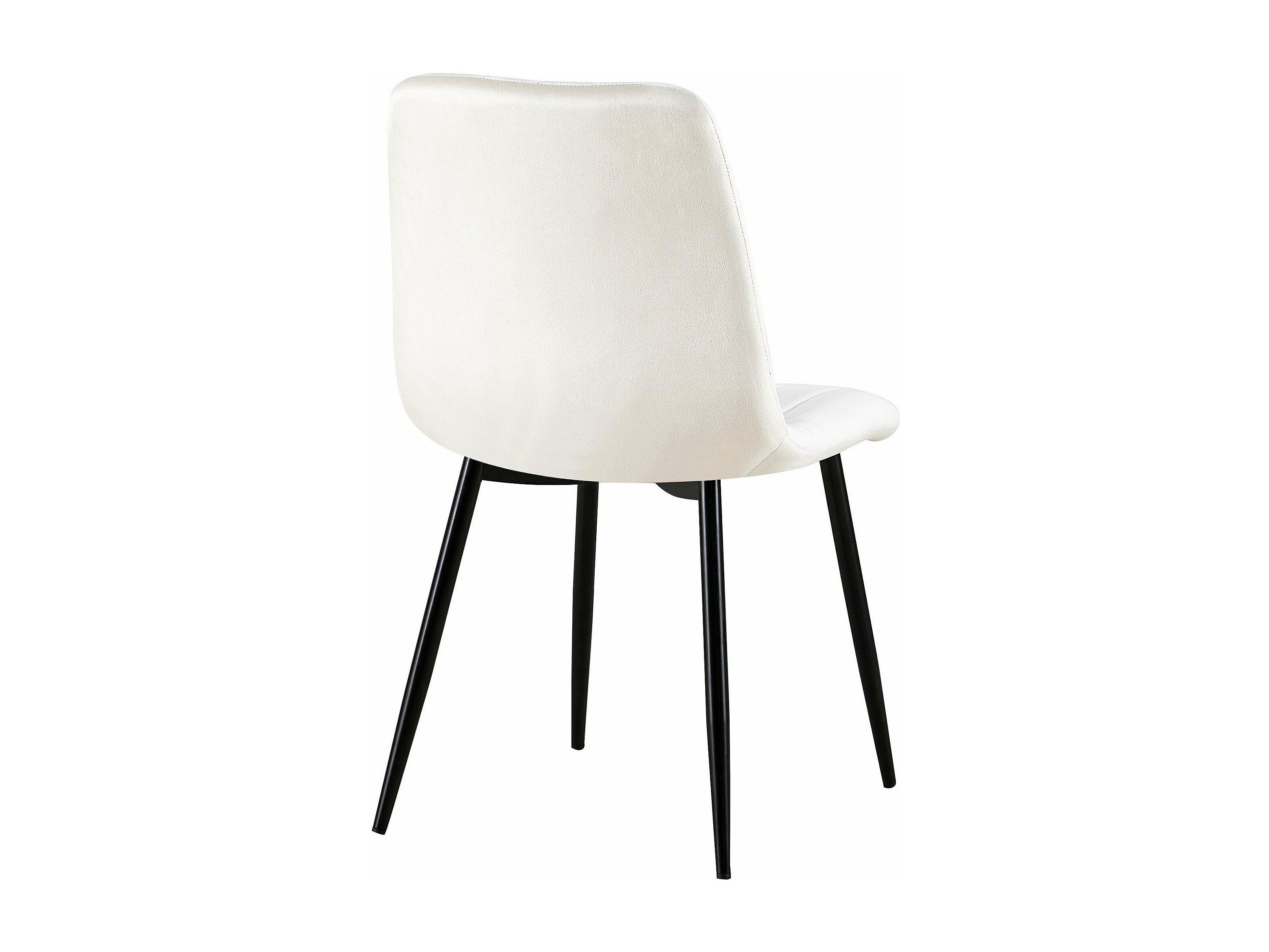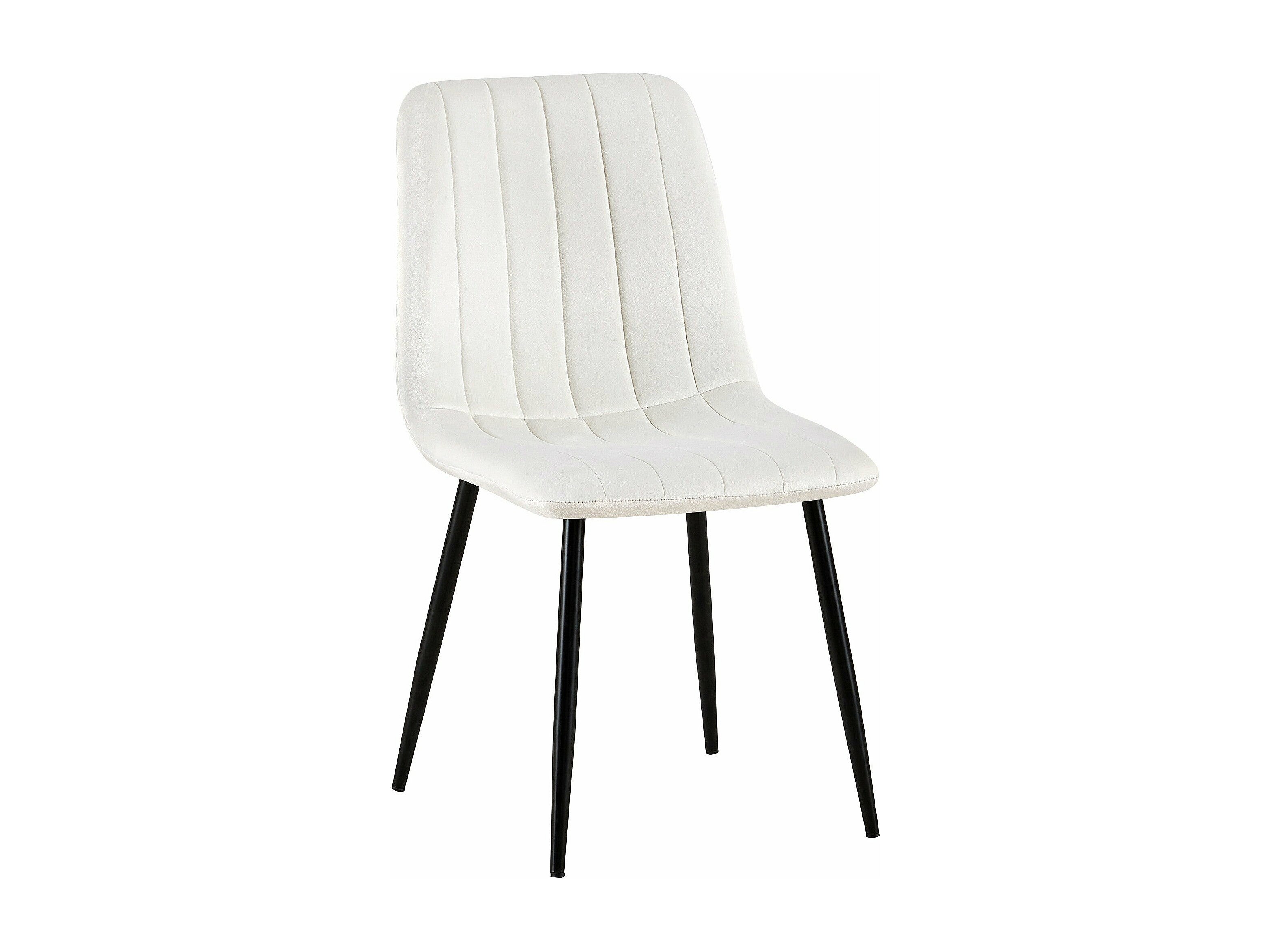 Silla de comedor costuras decorativas en terciopelo blanco base metal negro M10_002080
