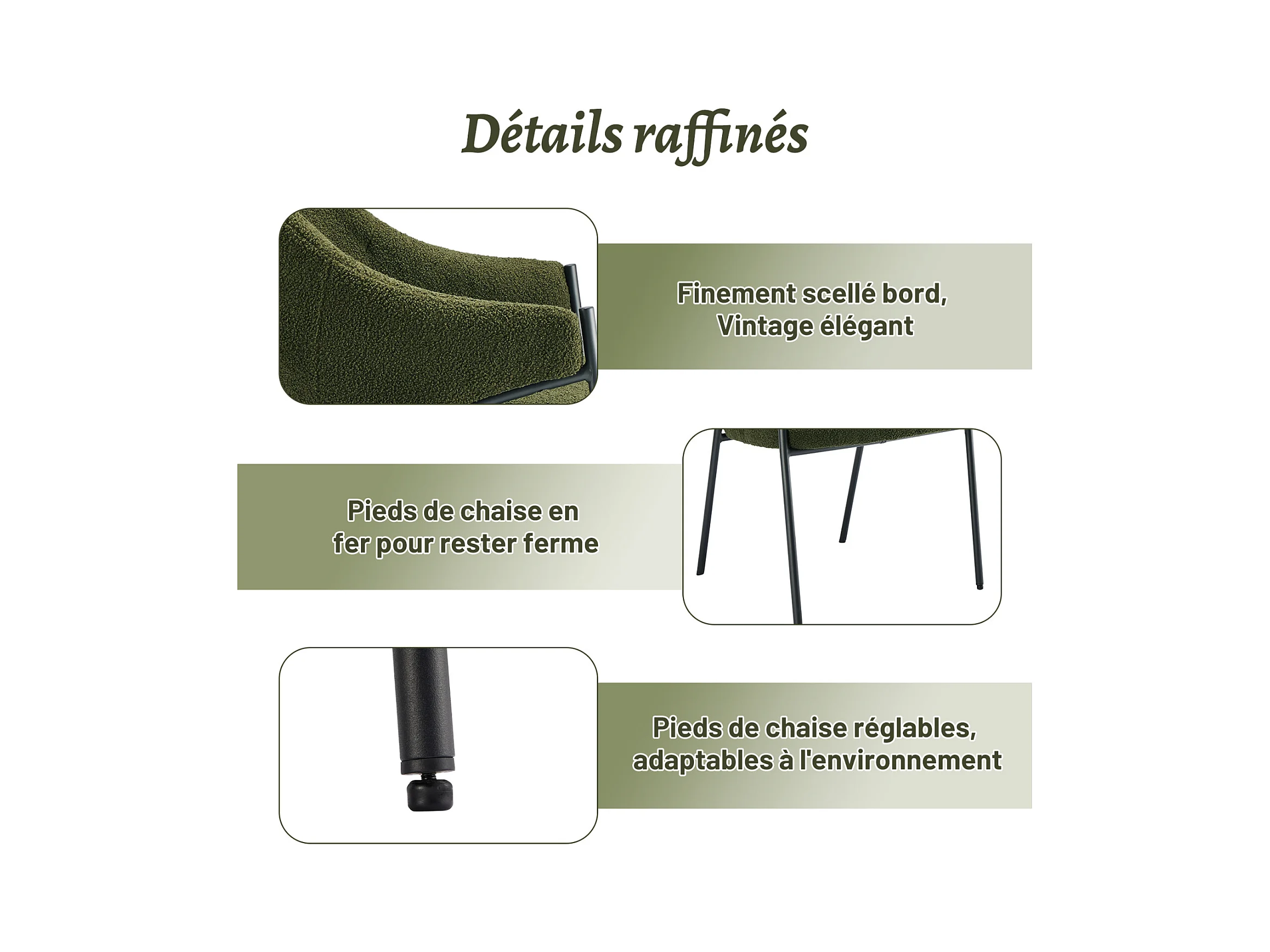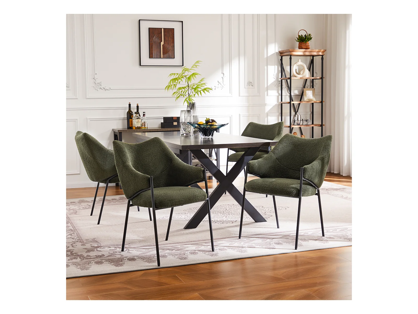 Silla de comedor de 4 piezas, con reposabrazos, tela de felpa de cordero, cojín de asiento grueso, 52,5 x 48 x 83,7 cm, color verde