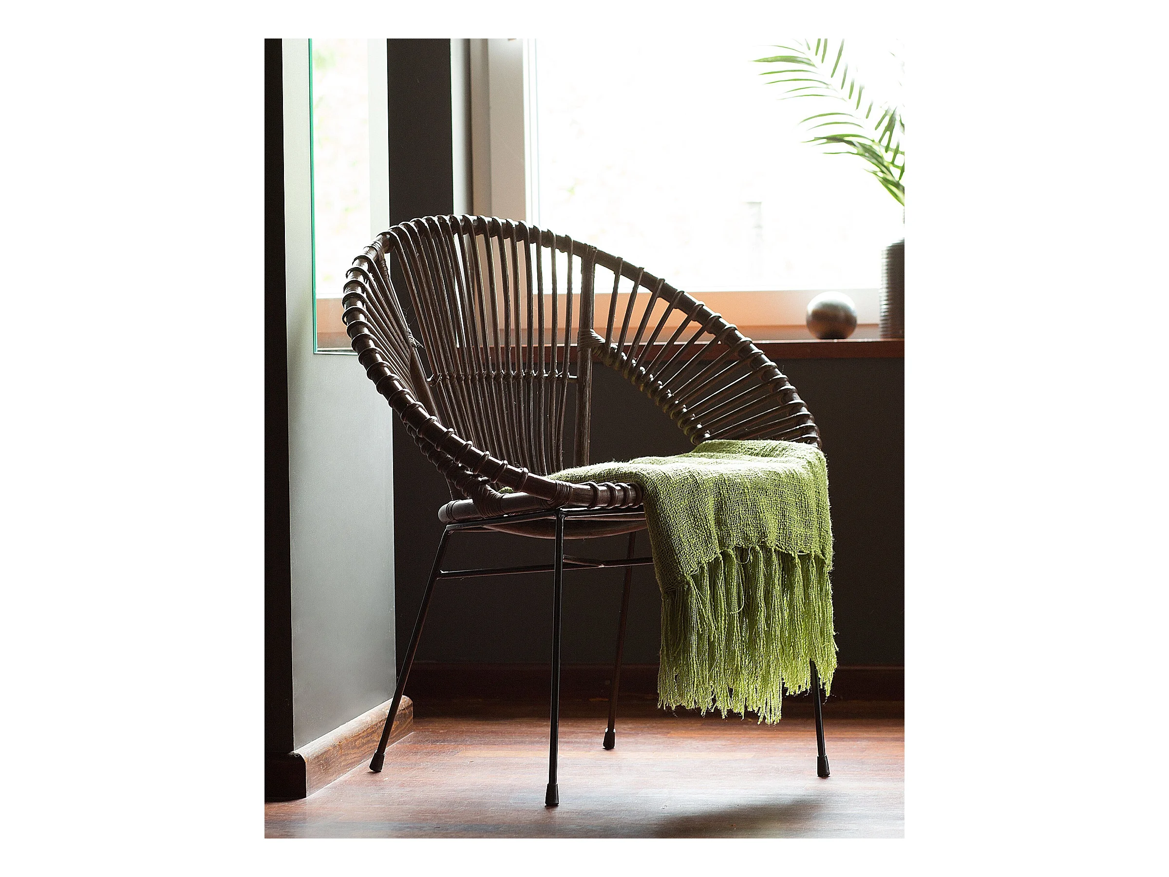 Silla de comedor con cojín ratán natural y lino marrón claro