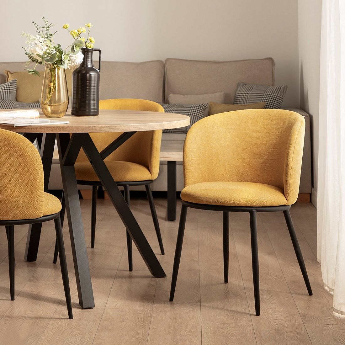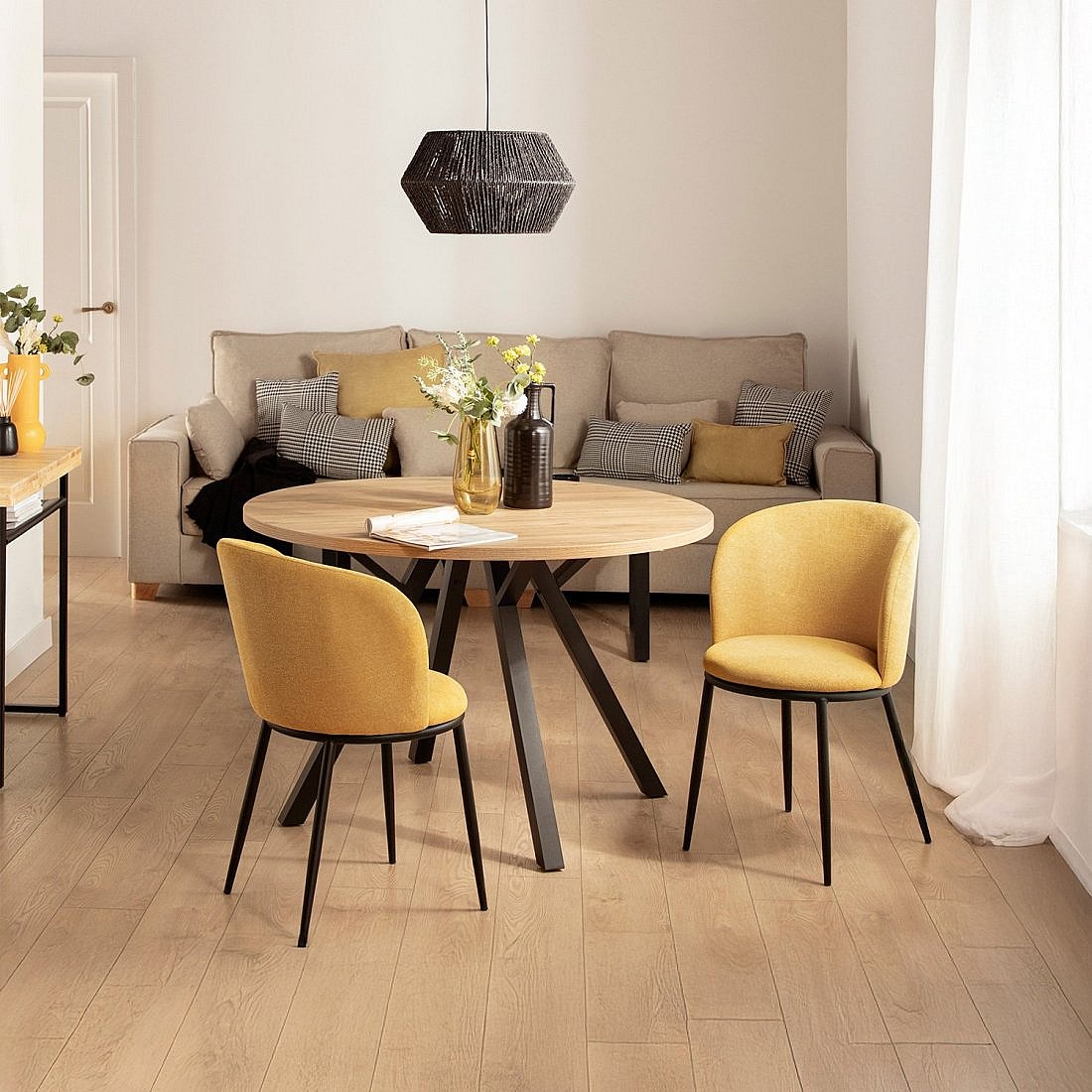 Mesa de comedor extensible 4 a 8 comensales de MDF y acero - Natural y negro - KOMONI
