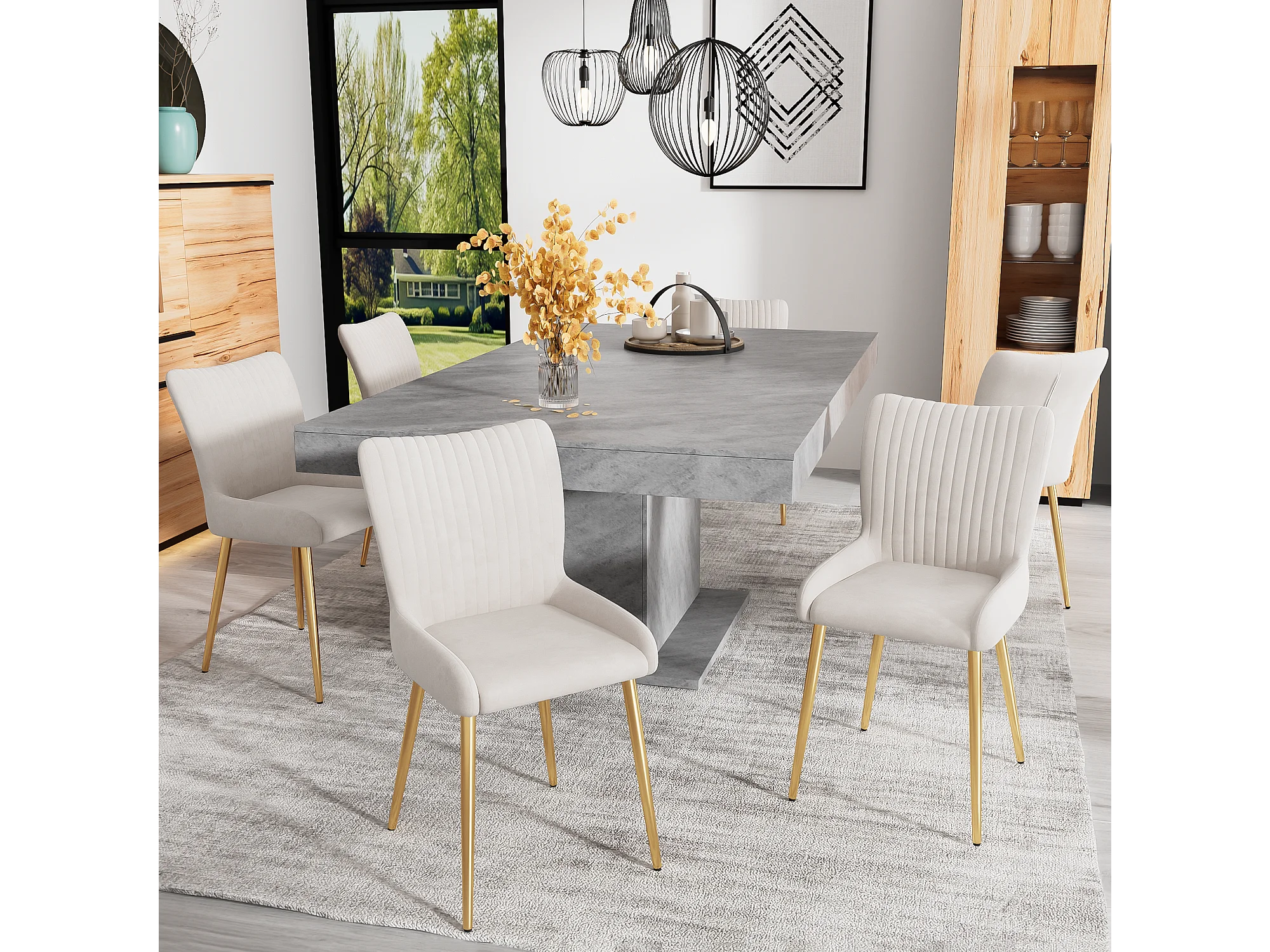 Silla de terciopelo beige con patas de metal dorado, confort lumbar, sala, dormitorio, comedor, juego de 2