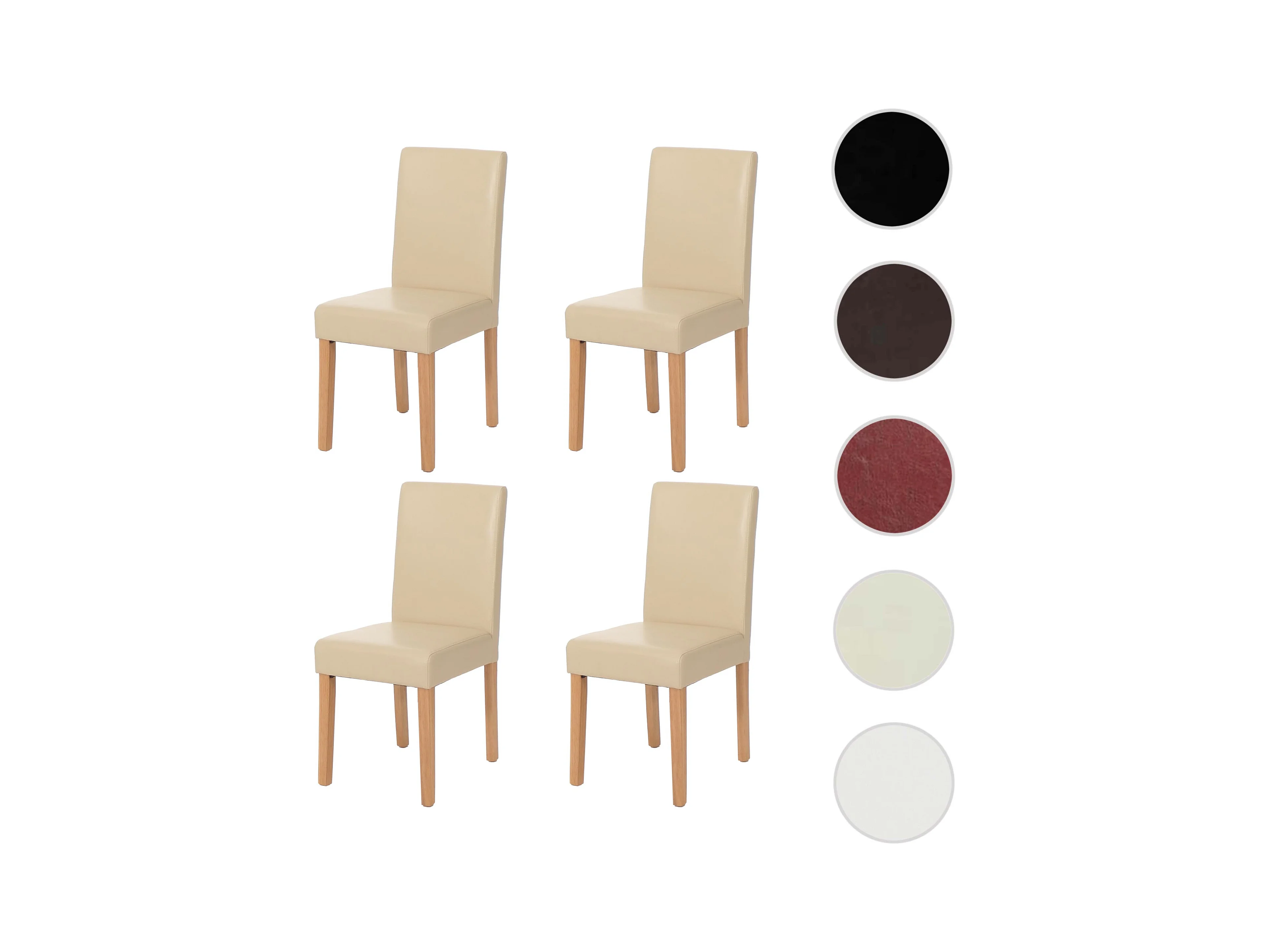 Silla de comedor Littau (set de 4), cuero, patas color crema claro