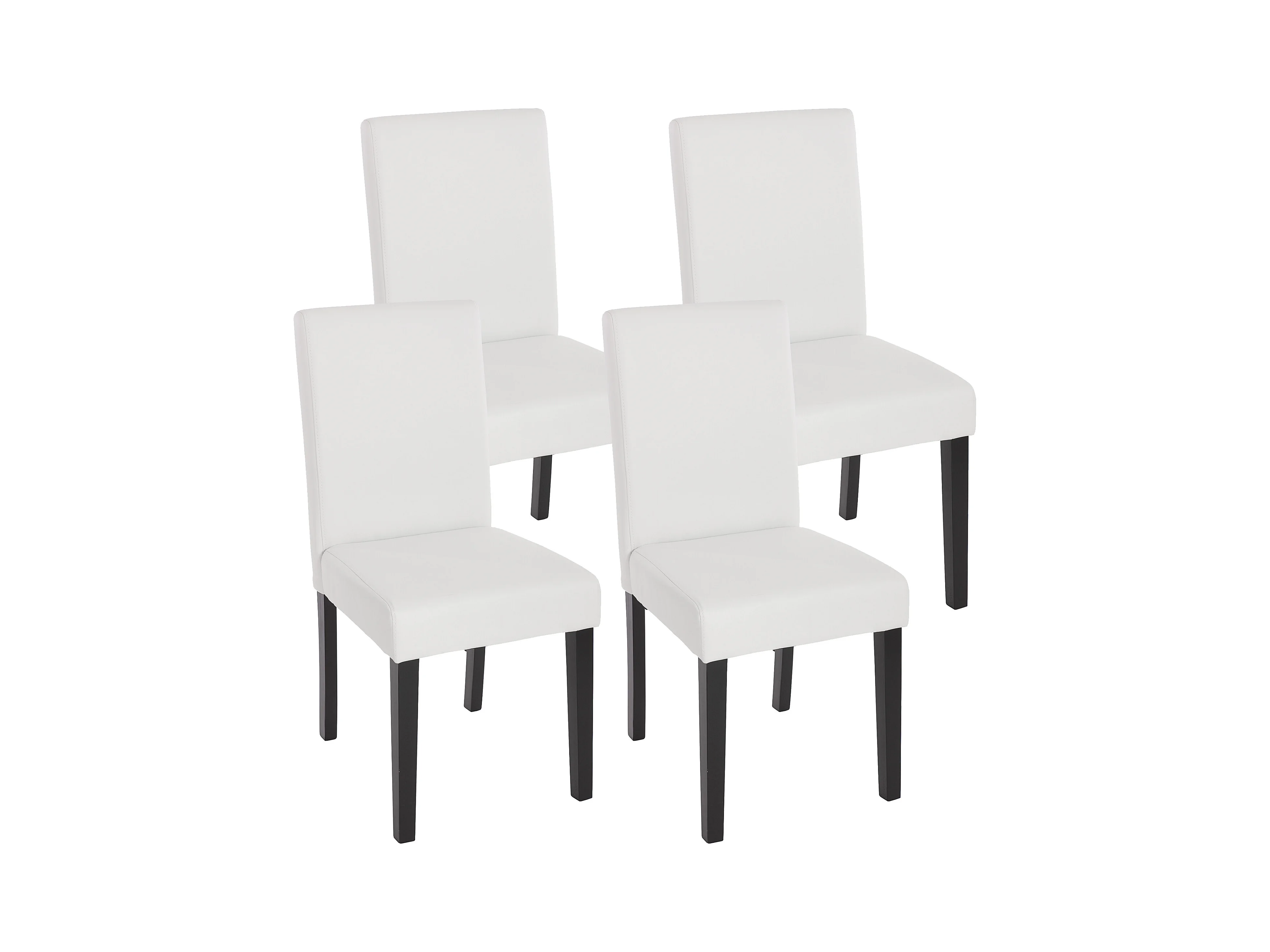 Silla de comedor Littau (set de 4), polipiel, blanco mate, patas oscuras