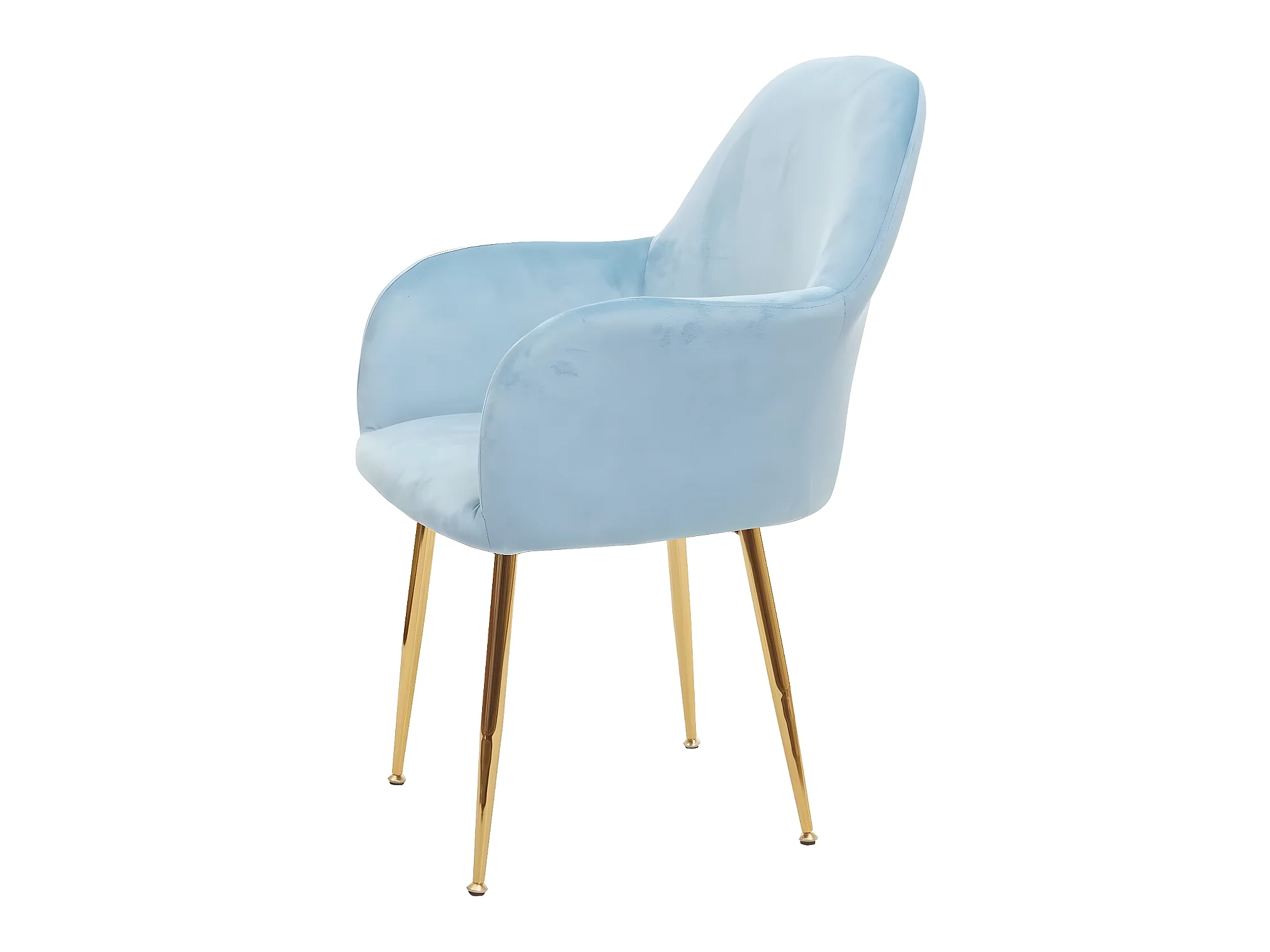 Silla de comedor Vaasa T381 (juego de 6), terciopelo, azul petróleo, patas claras