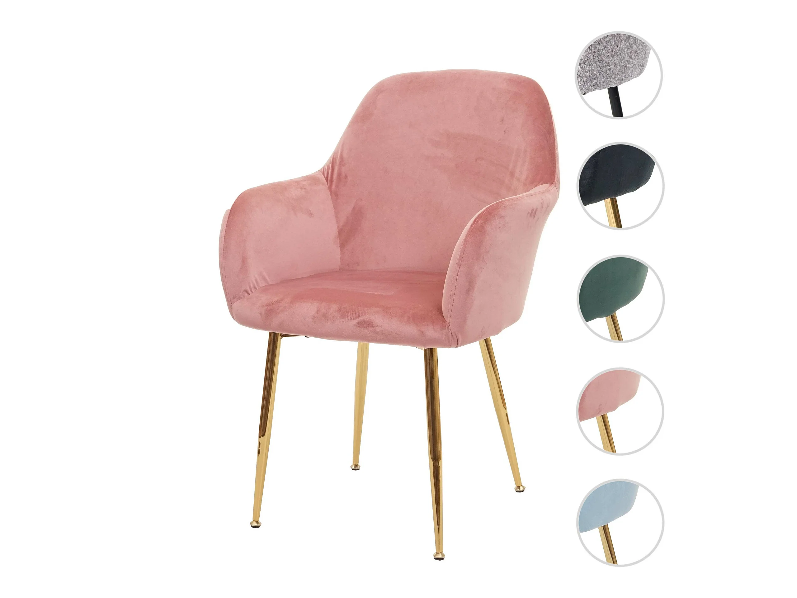 Silla de comedor MCW-F18, terciopelo rosa viejo, patas doradas