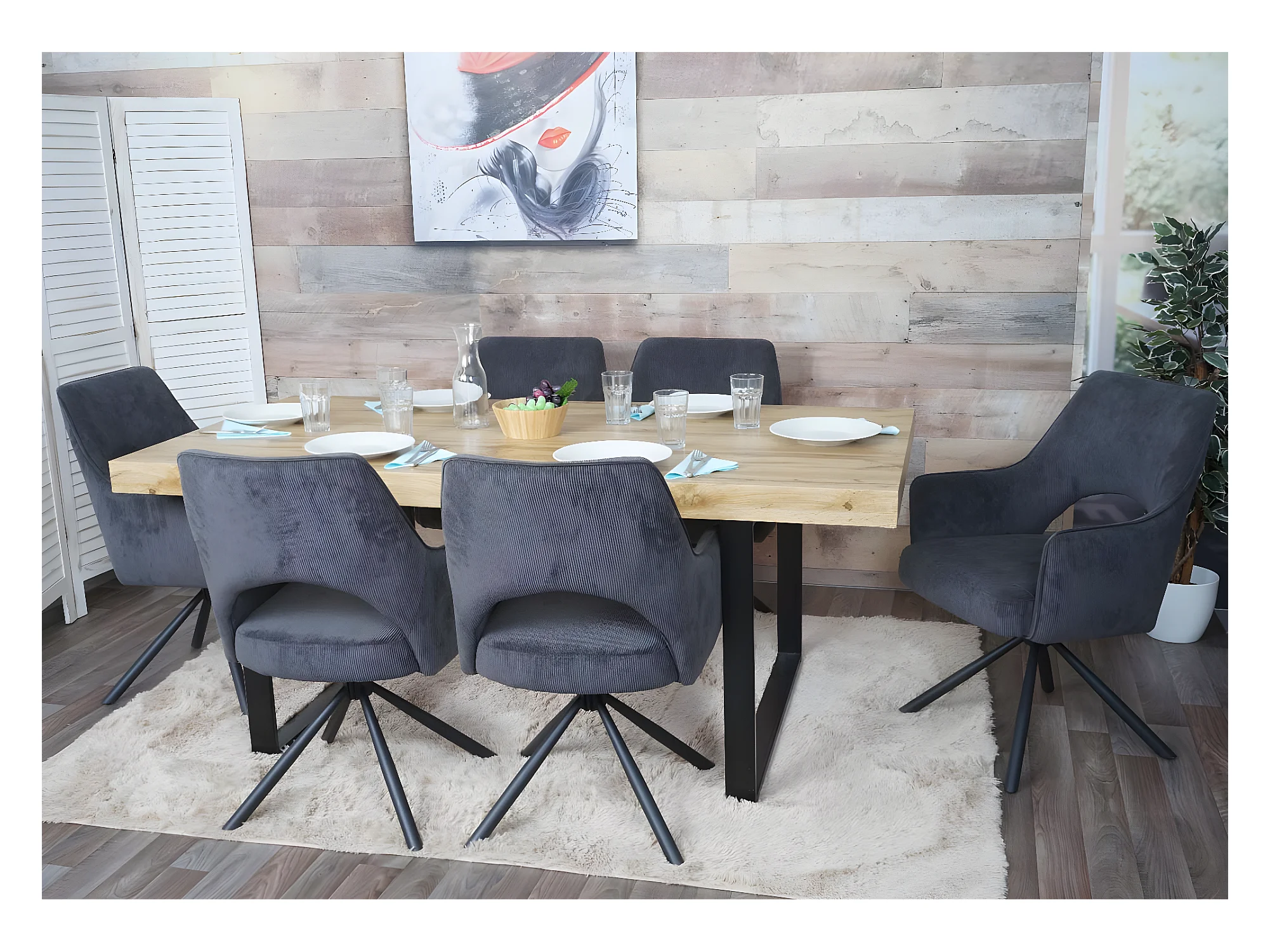 Mesa de cocina para comedor Loft en colores con patas de concreto negro claro.