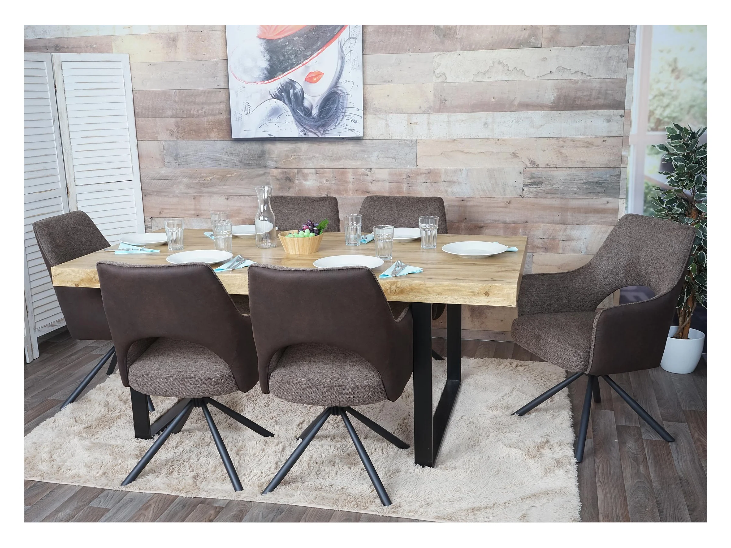 Silla de comedor Vaasa T381 (juego de 6), textil, vintage marrón oscuro, patas claras