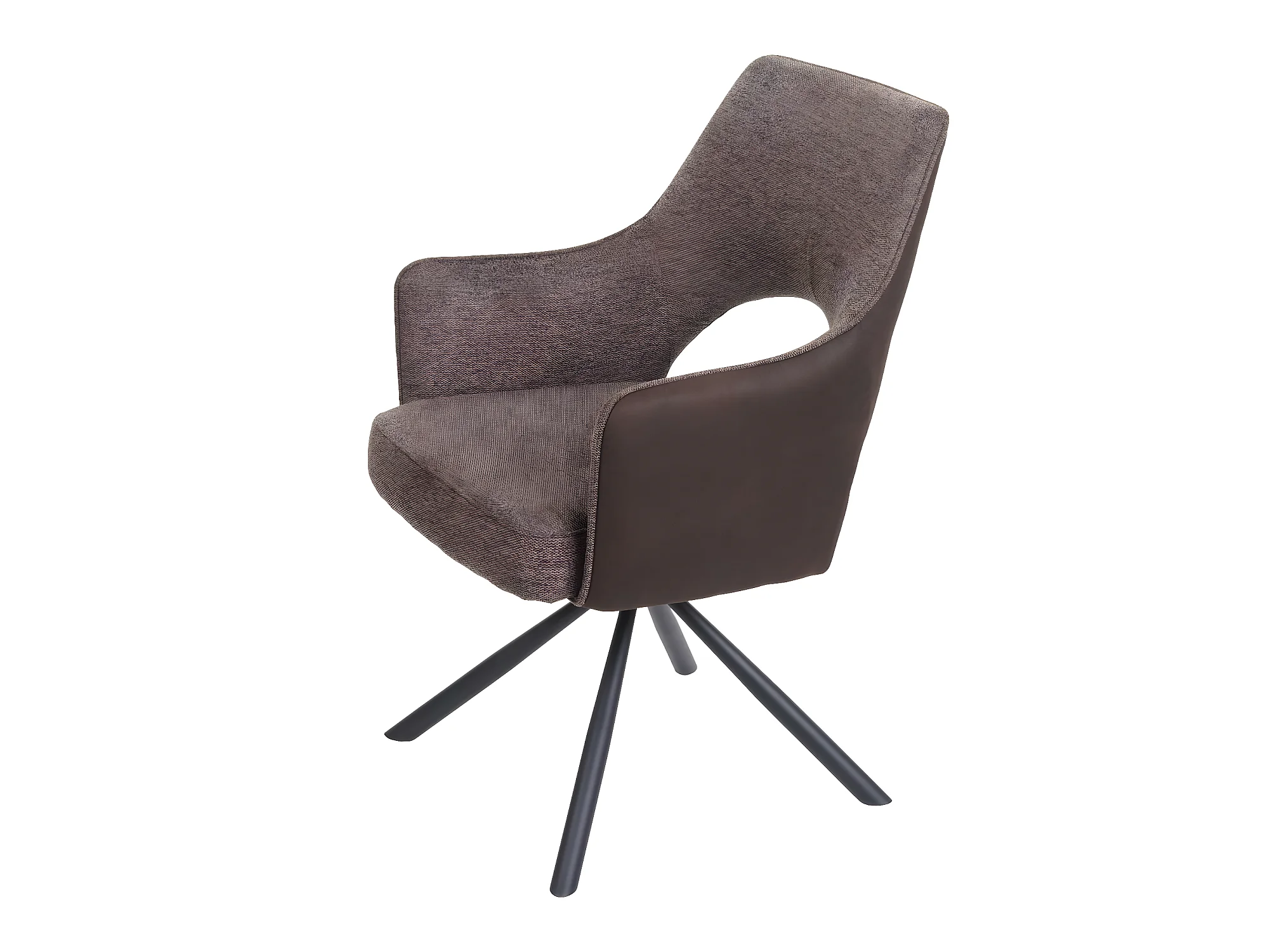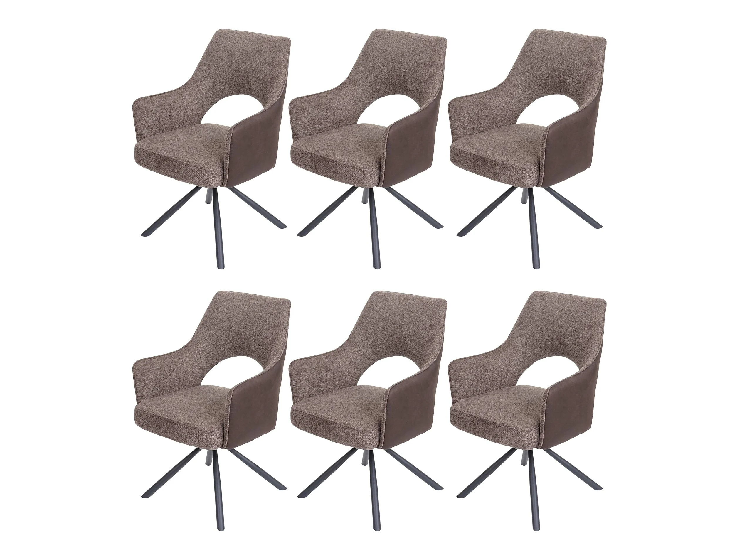 Silla de comedor MCW-G66 (juego de 6), marrón-marrón oscuro, con reposabrazos