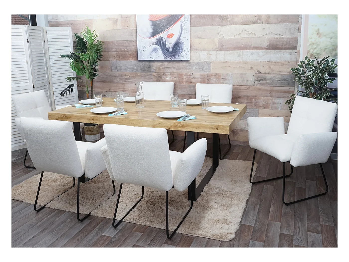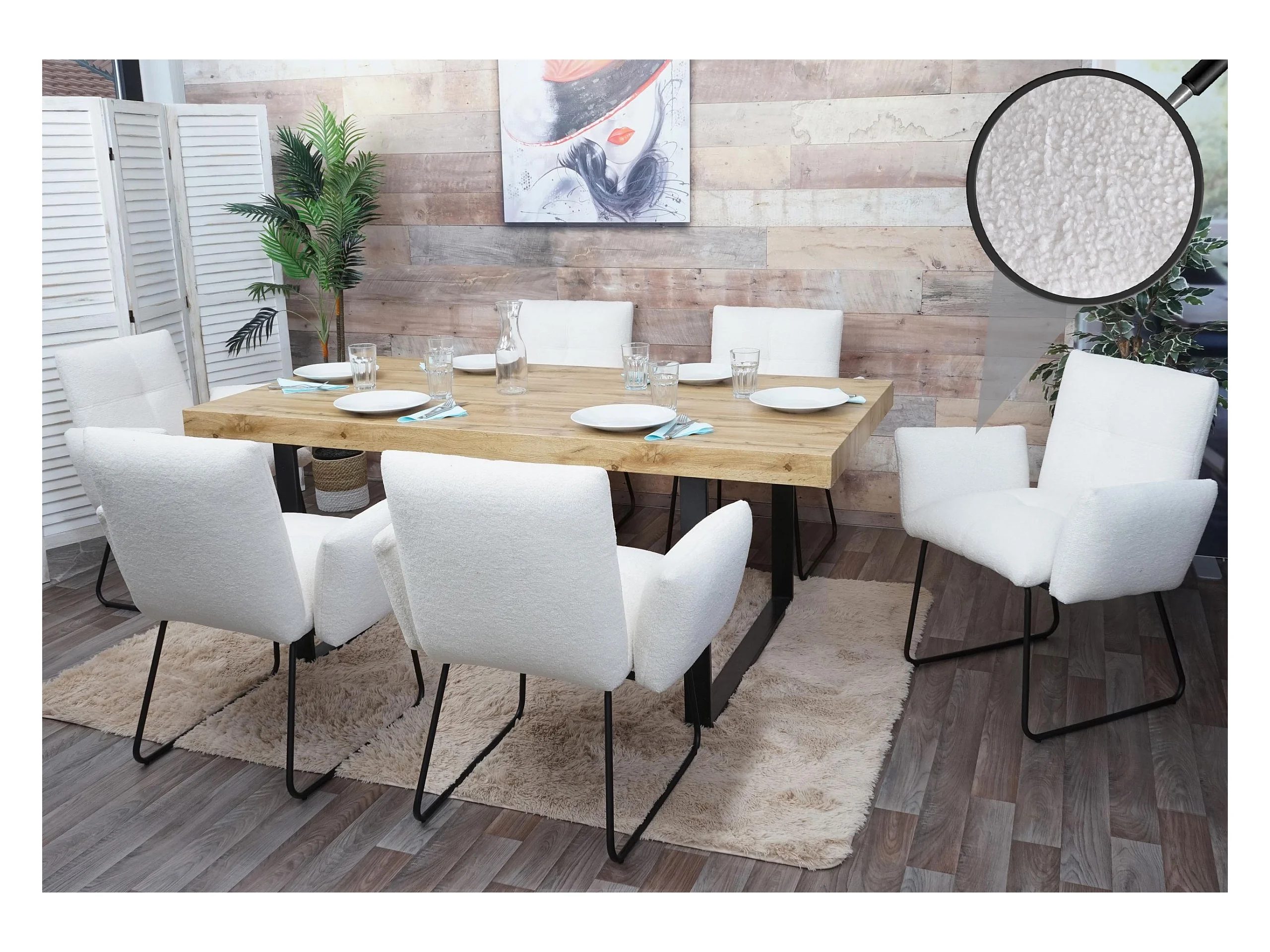 Silla de comedor MCW-K33 (set de 2), bouclé-blanco