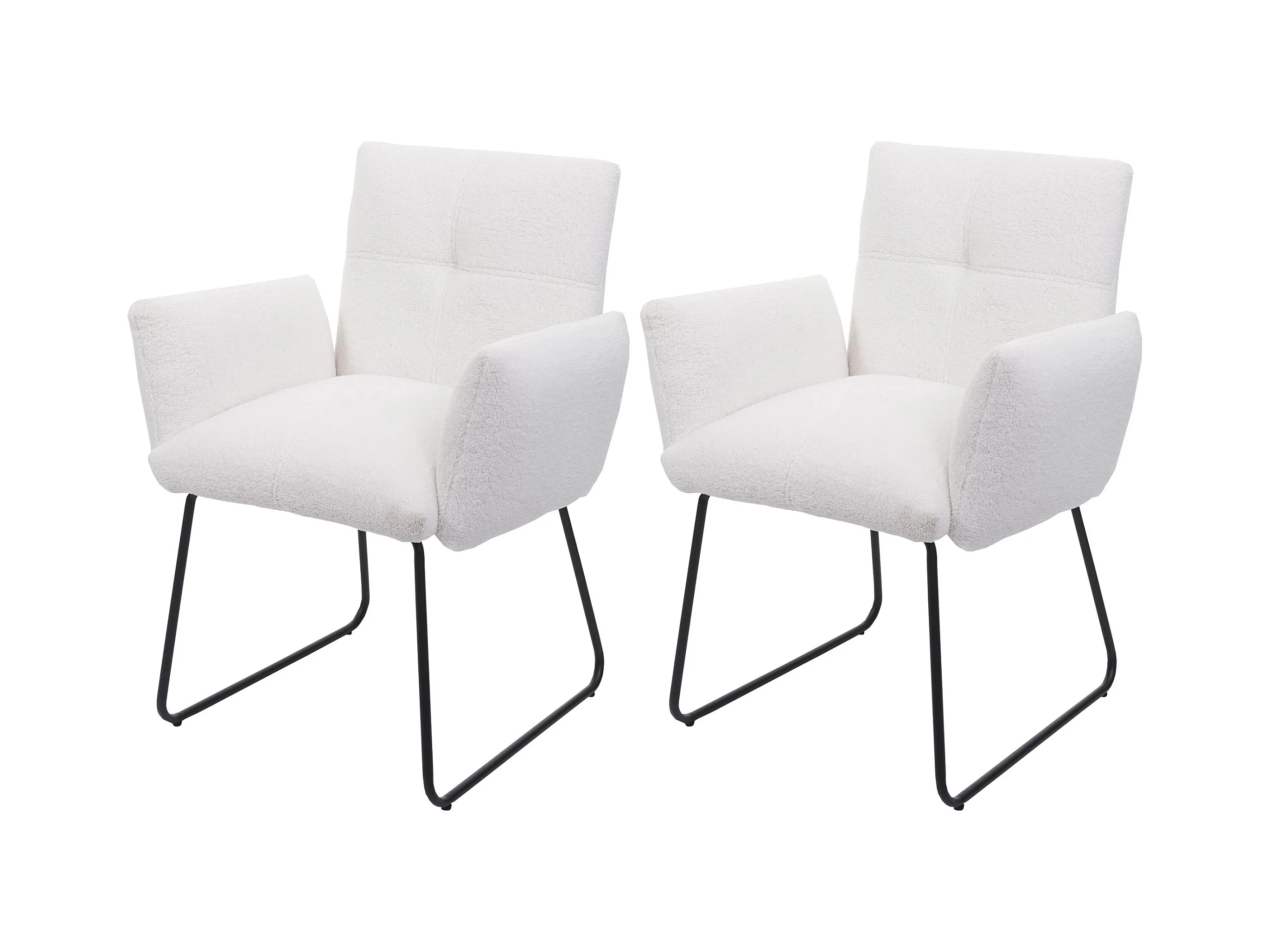 Juego de 2 sillones de bouclé blanco Kanoa con reposabrazos