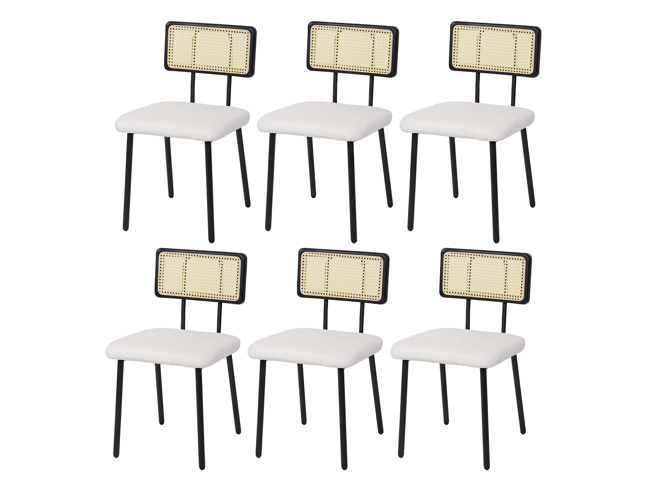 Silla de comedor MCW-K88 (juego de 6), tela/textil blanco
