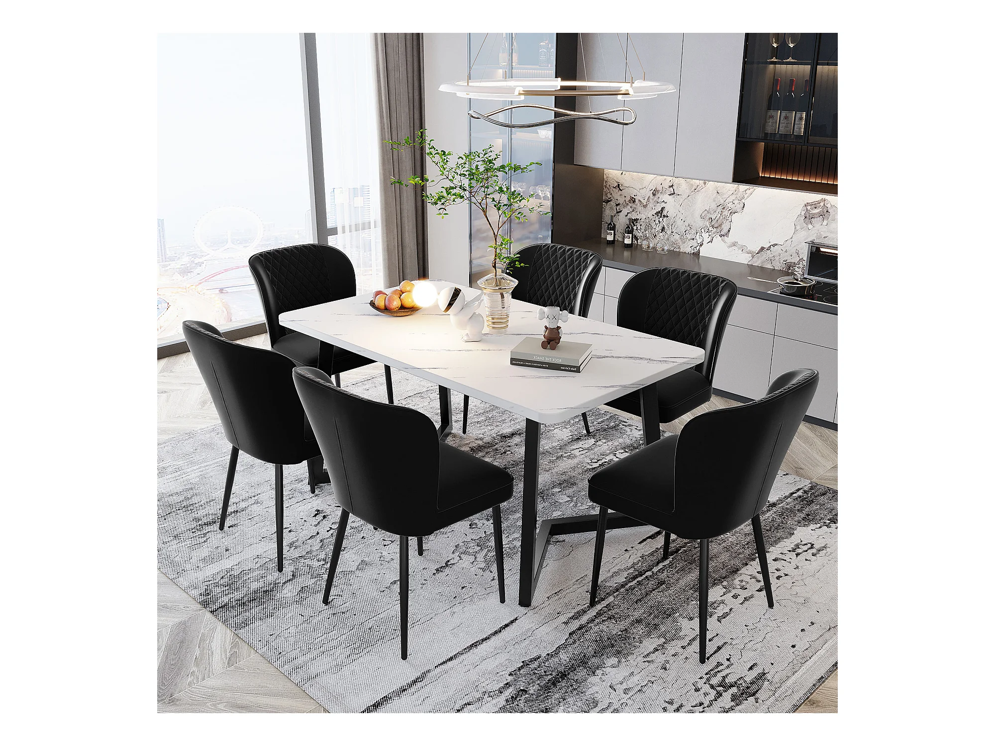 Conjunto de 6 sillas tapizada en terciopelo negro patas acero negro 08_0000021
