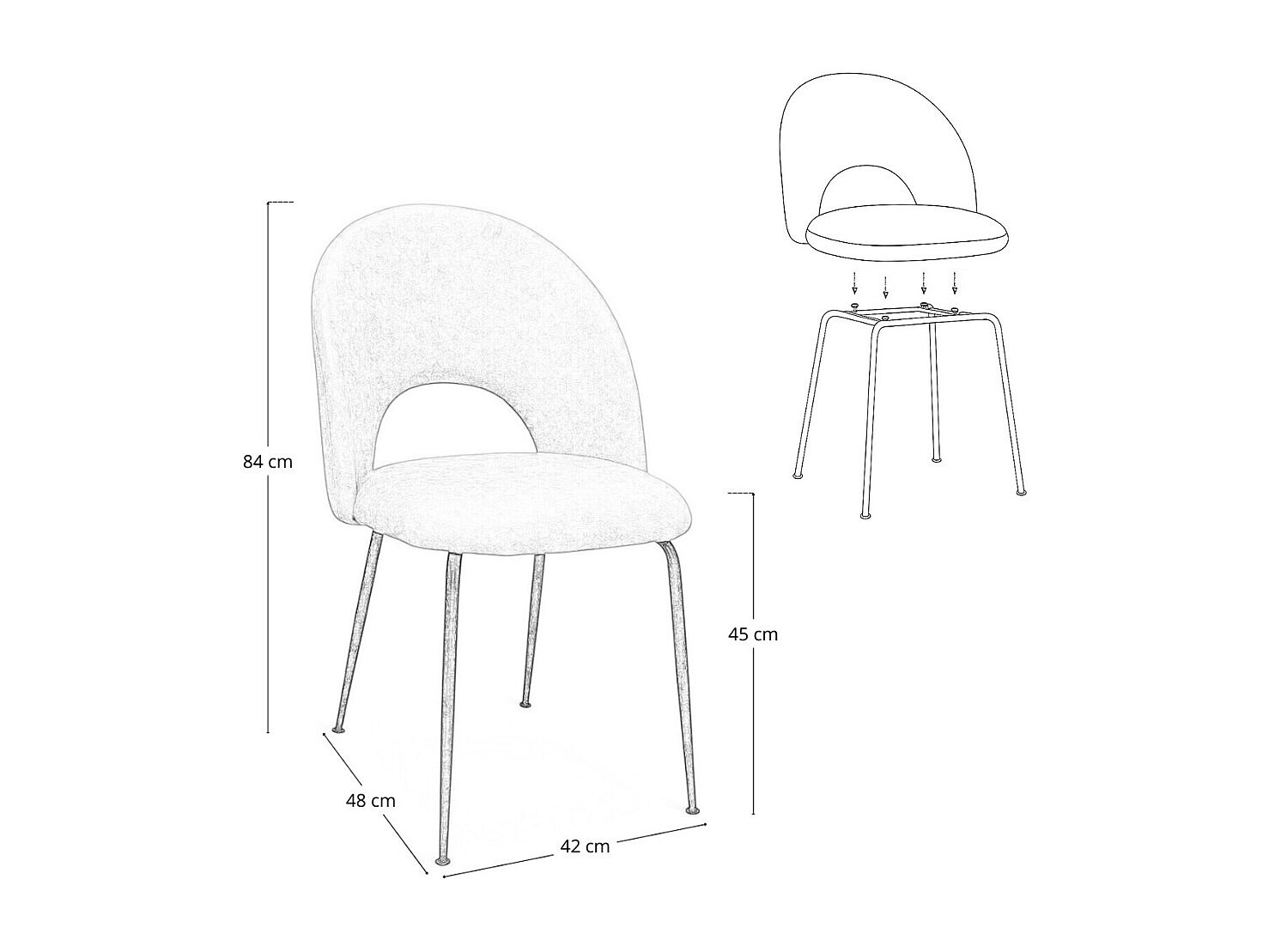 Silla de comedor Kety en microfibra gris claro con patas de metal negro