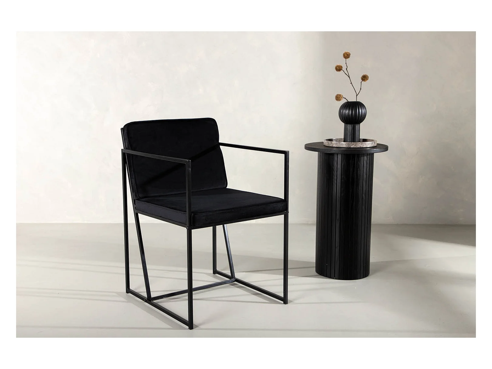 Silla de comedor Richmond con reposabrazos, terciopelo negro.