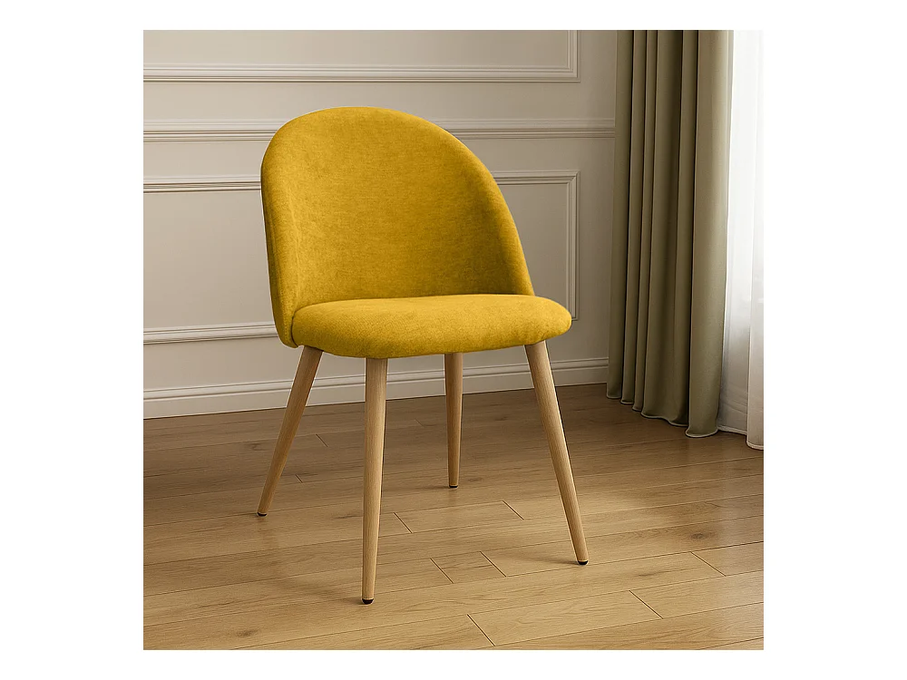 Lote de 4 sillas en tela amarillo mostaza con patas de metal efecto madera – 45x87x54 cm – Colección NORDICA