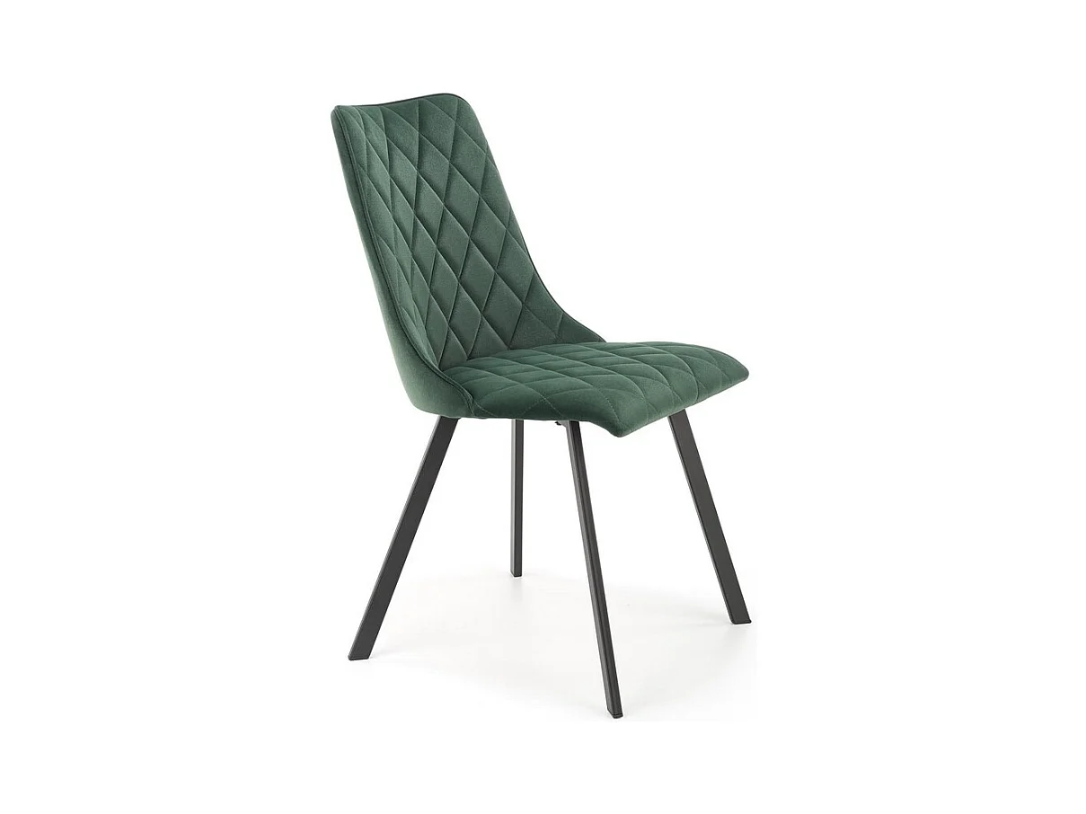 Silla de comedor tapizada en terciopelo verde oscuro con patas de metal negro ODUNA