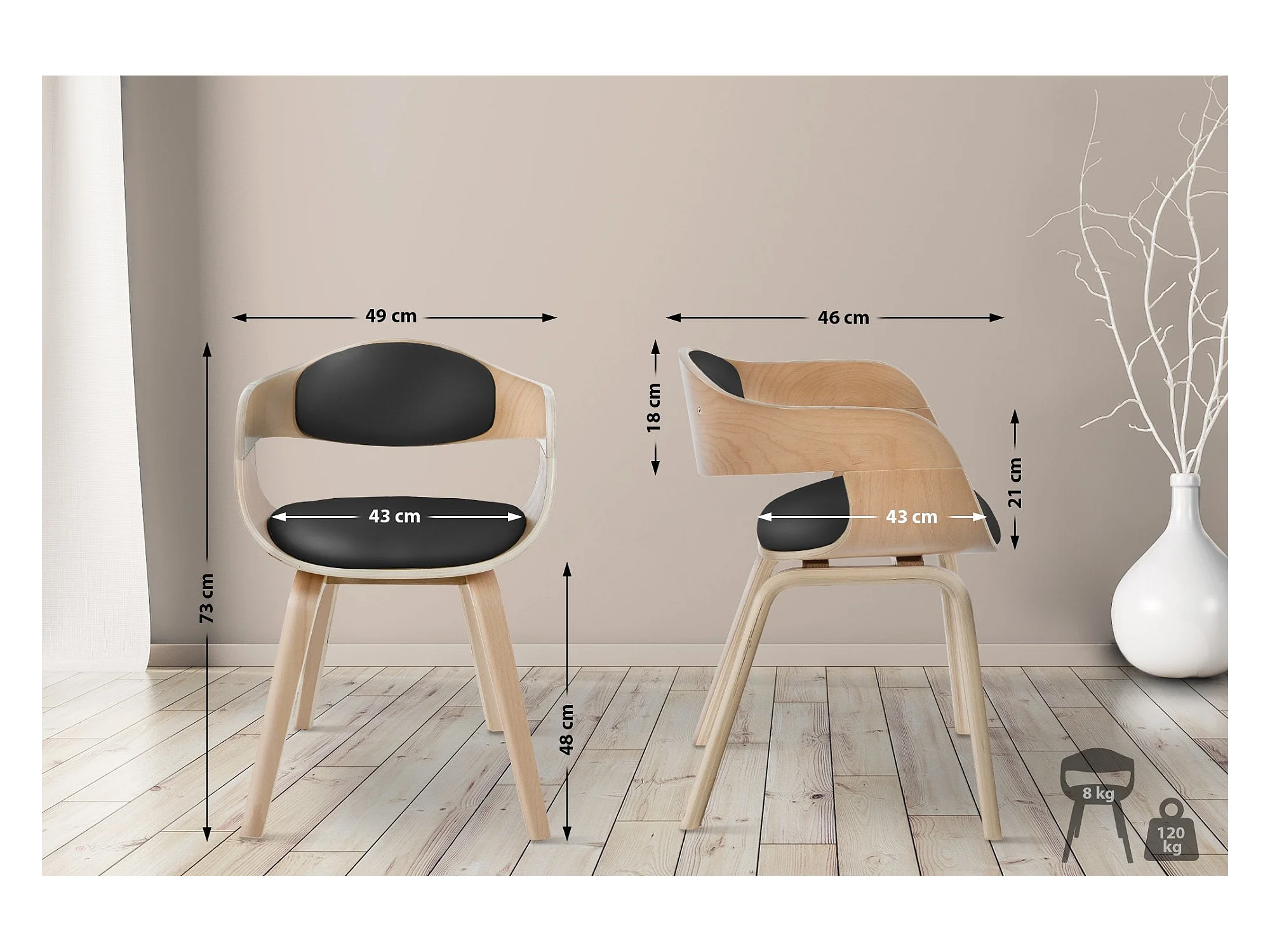 Silla de comedor visita oficina diseño retro polipiel negro soporte madera M10_003245