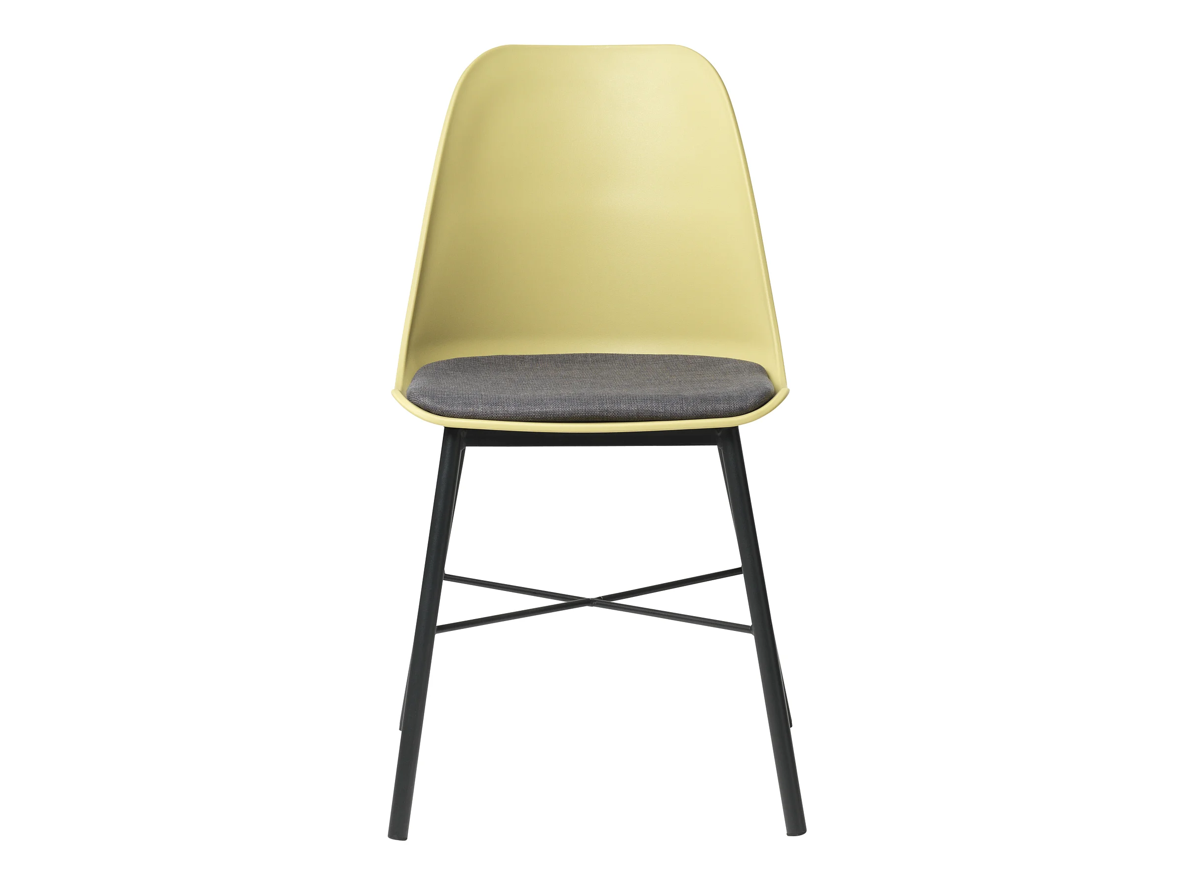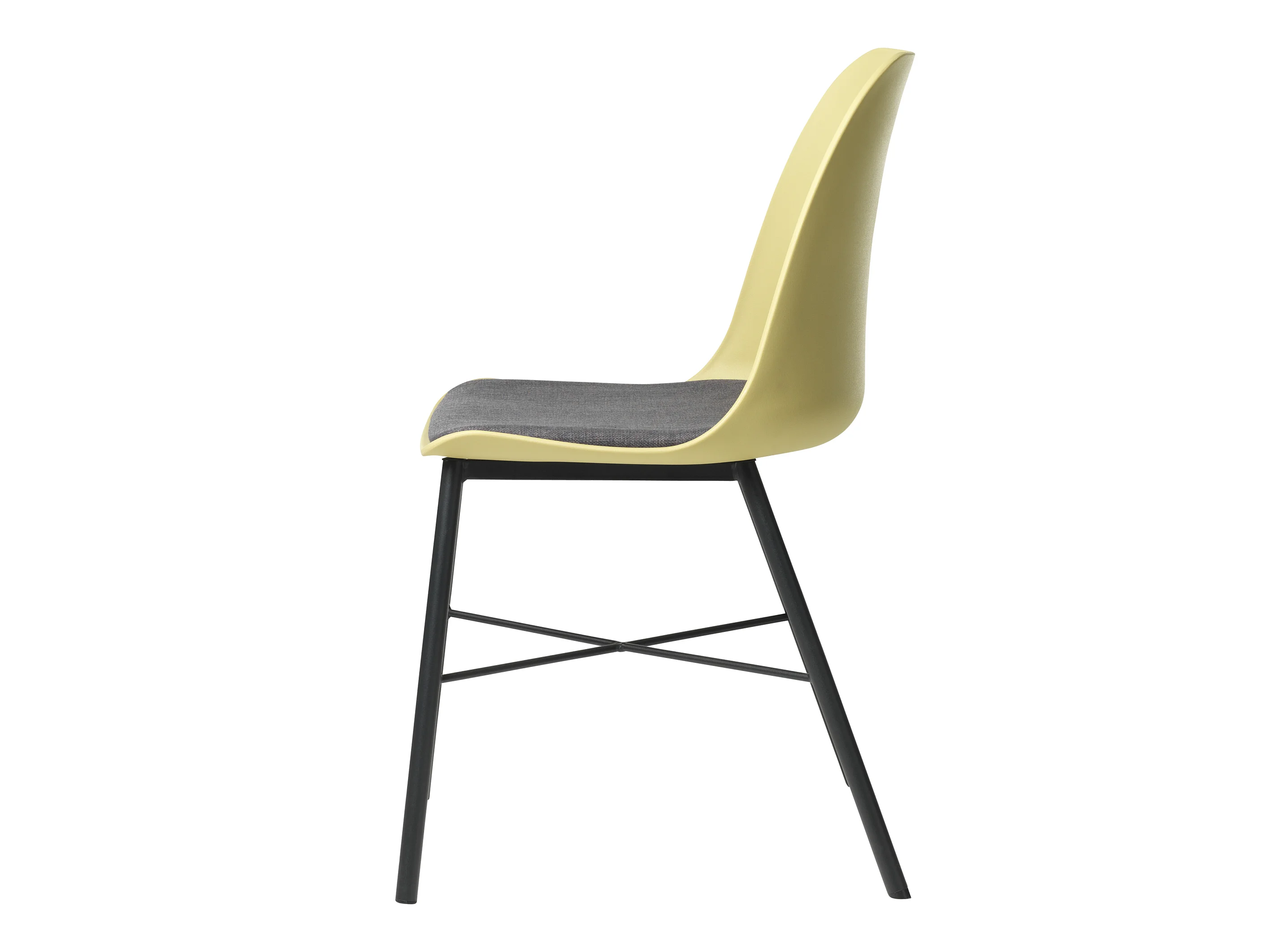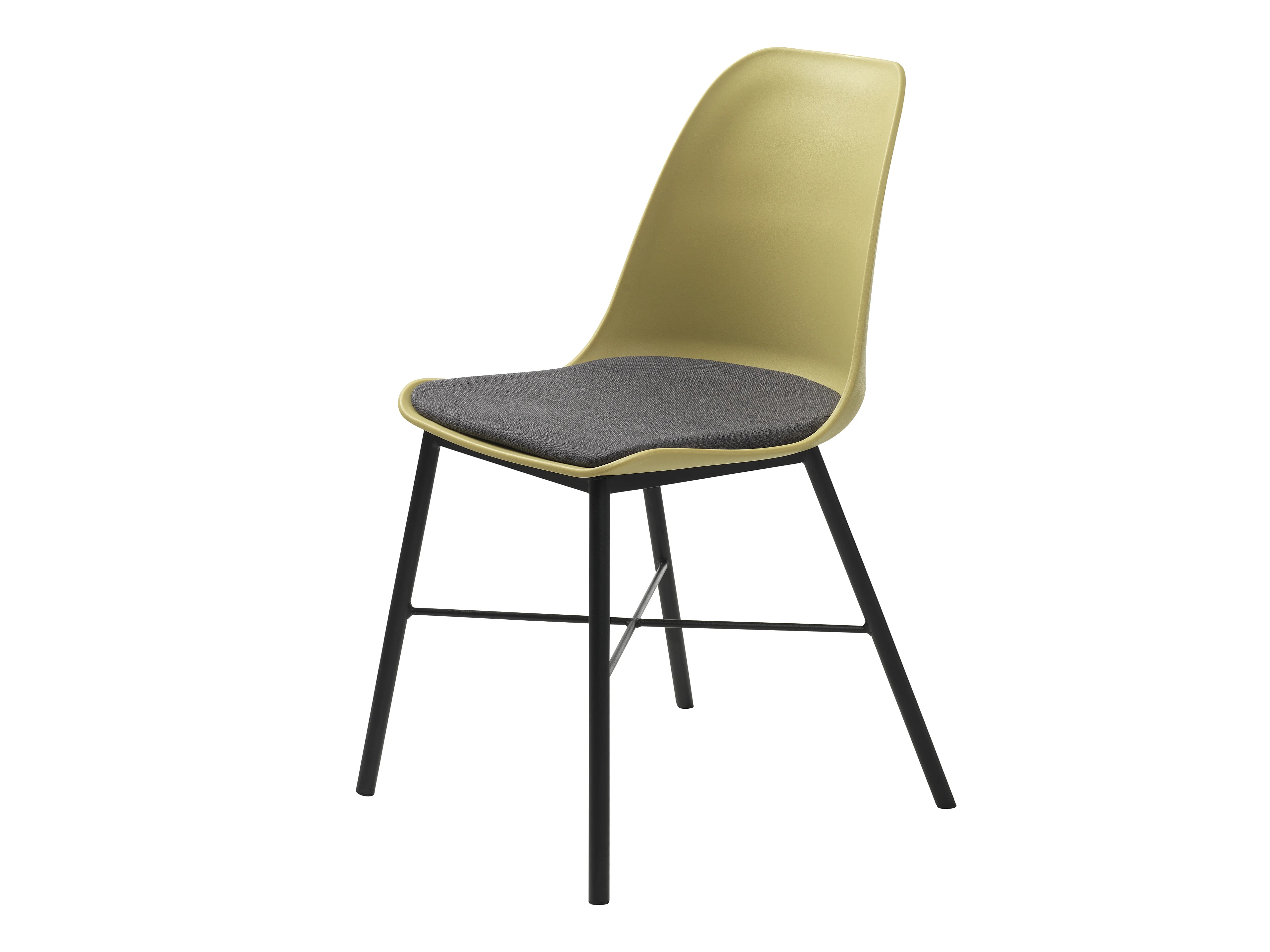 Silla de comedor Whise en color amarillo polvoriento y gris, estructura de metal negro.