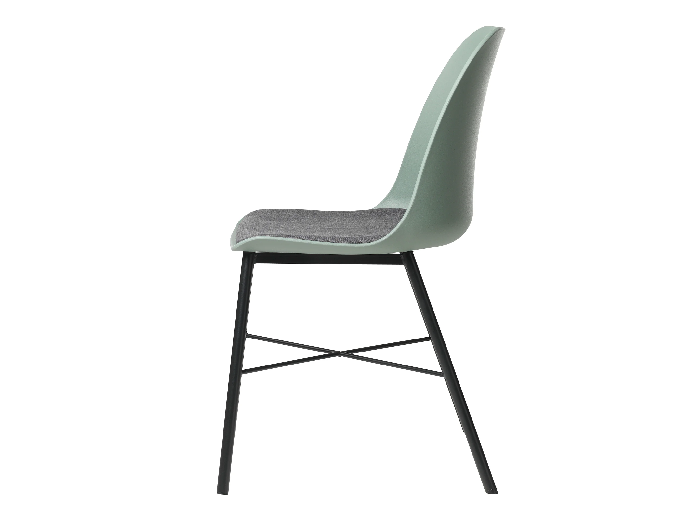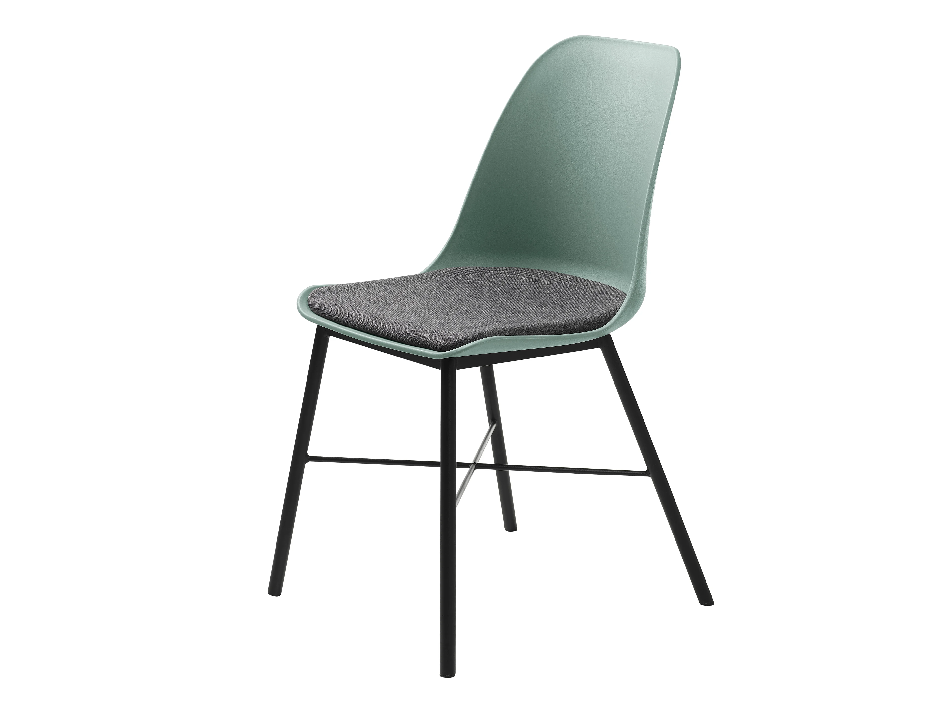 Silla de comedor Whise en color verde polvoriento y gris, estructura de metal negro.