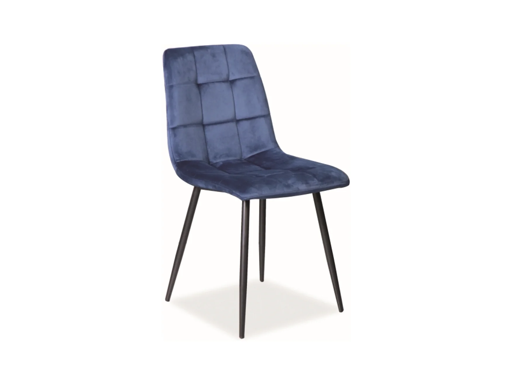 Silla de diseño de metal negro con terciopelo azul Frigg