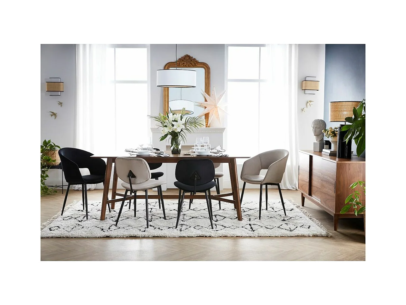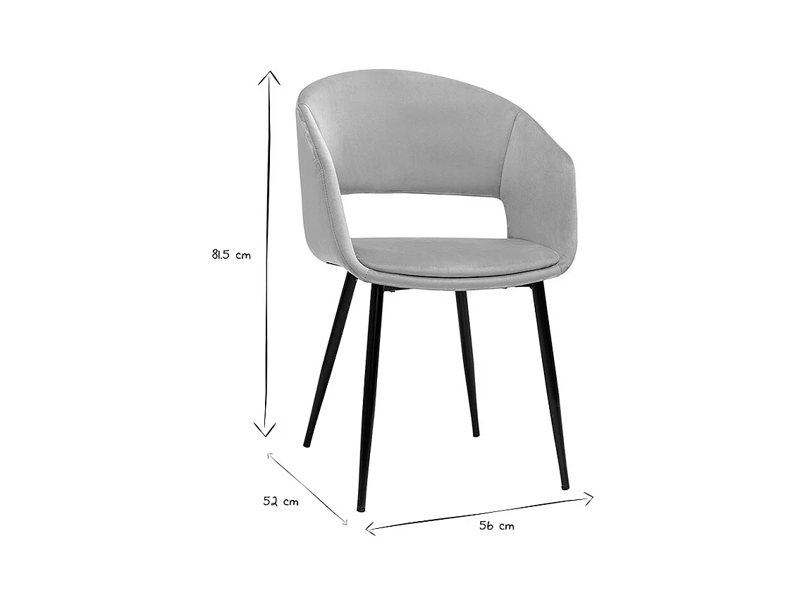 Silla de diseño de terciopelo color topo y patas de metal negro MILLY