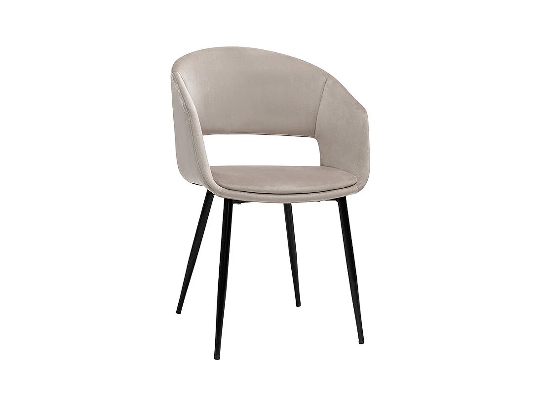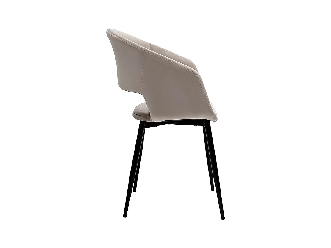 Silla de diseño de terciopelo color topo con patas de metal negro PRISMA
