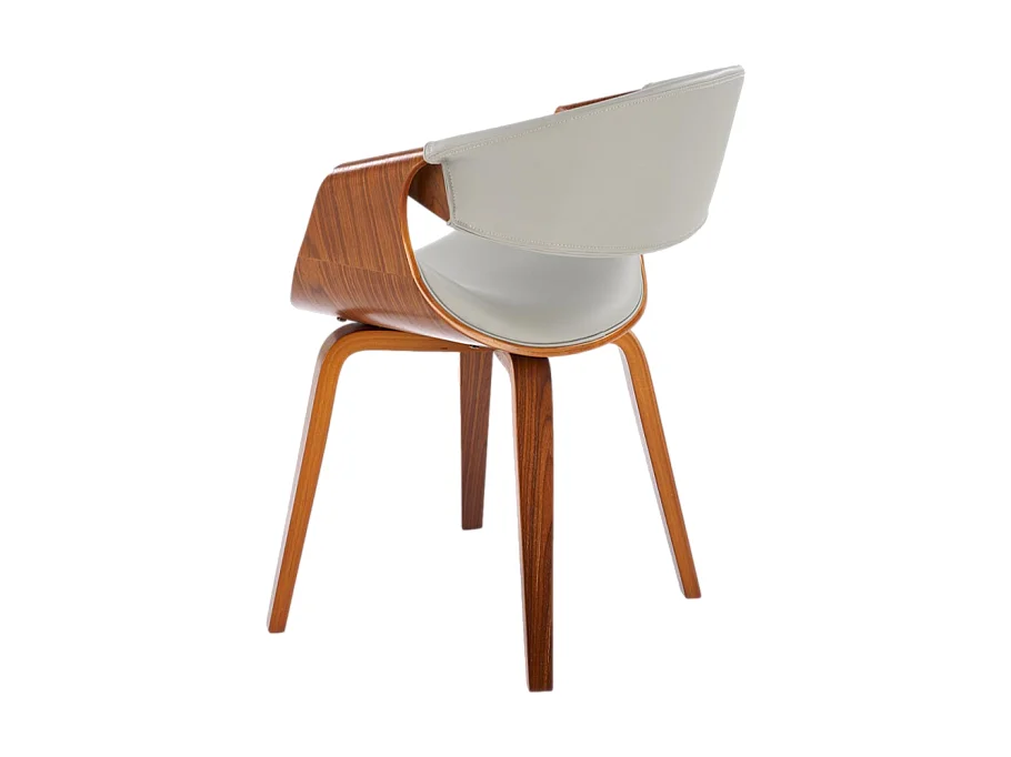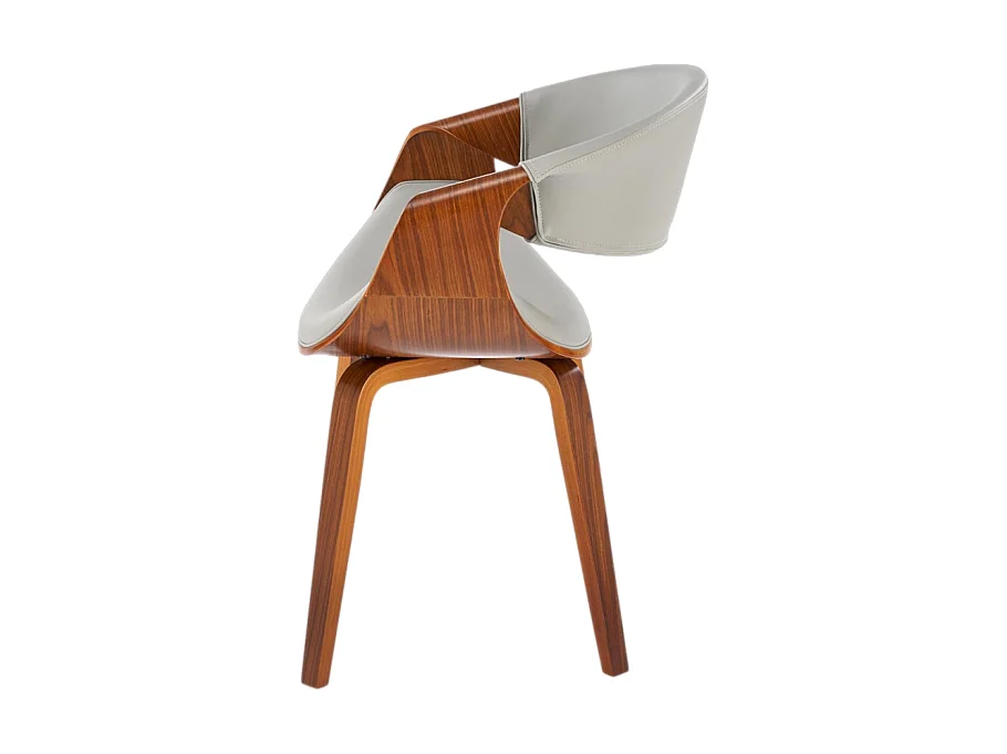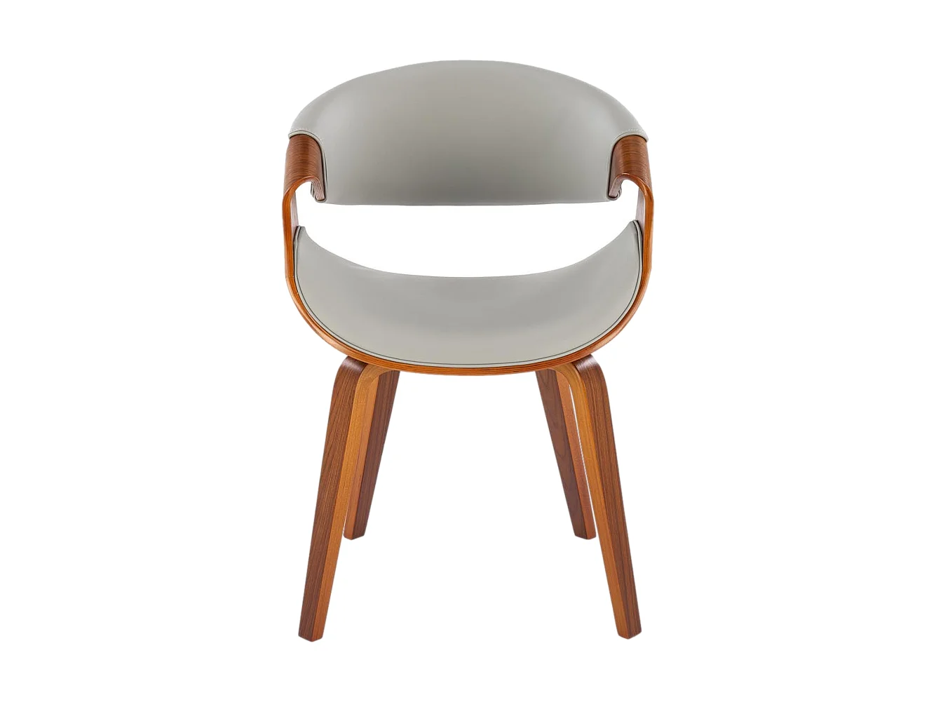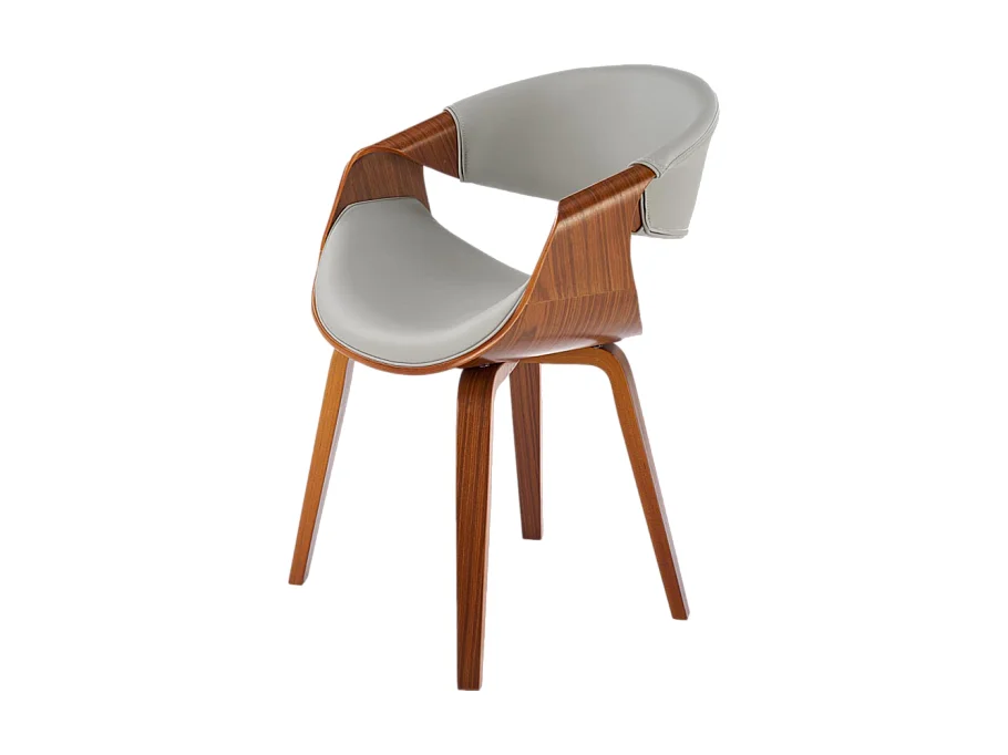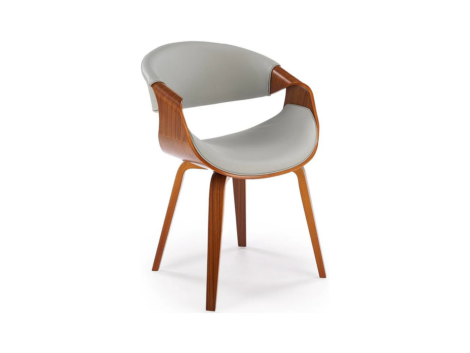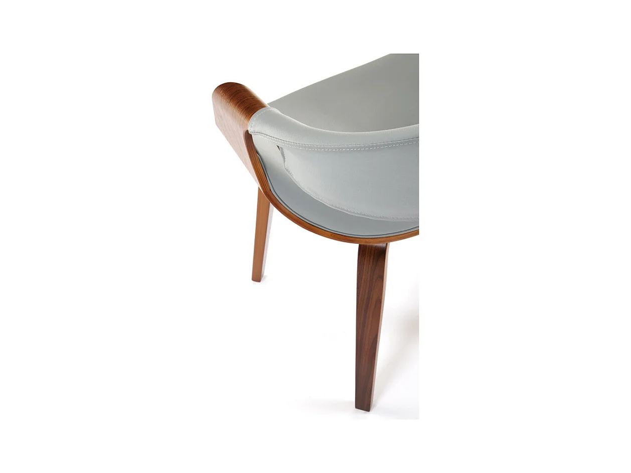 Silla de comedor Aura patas de roble con reposabrazos y retorno en color gris oscuro.