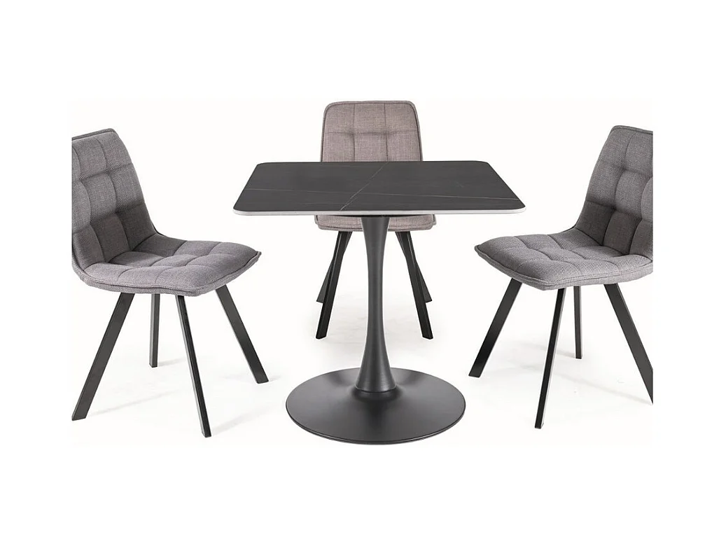 Silla de diseño en tejido gris con patas de metal negro Louise