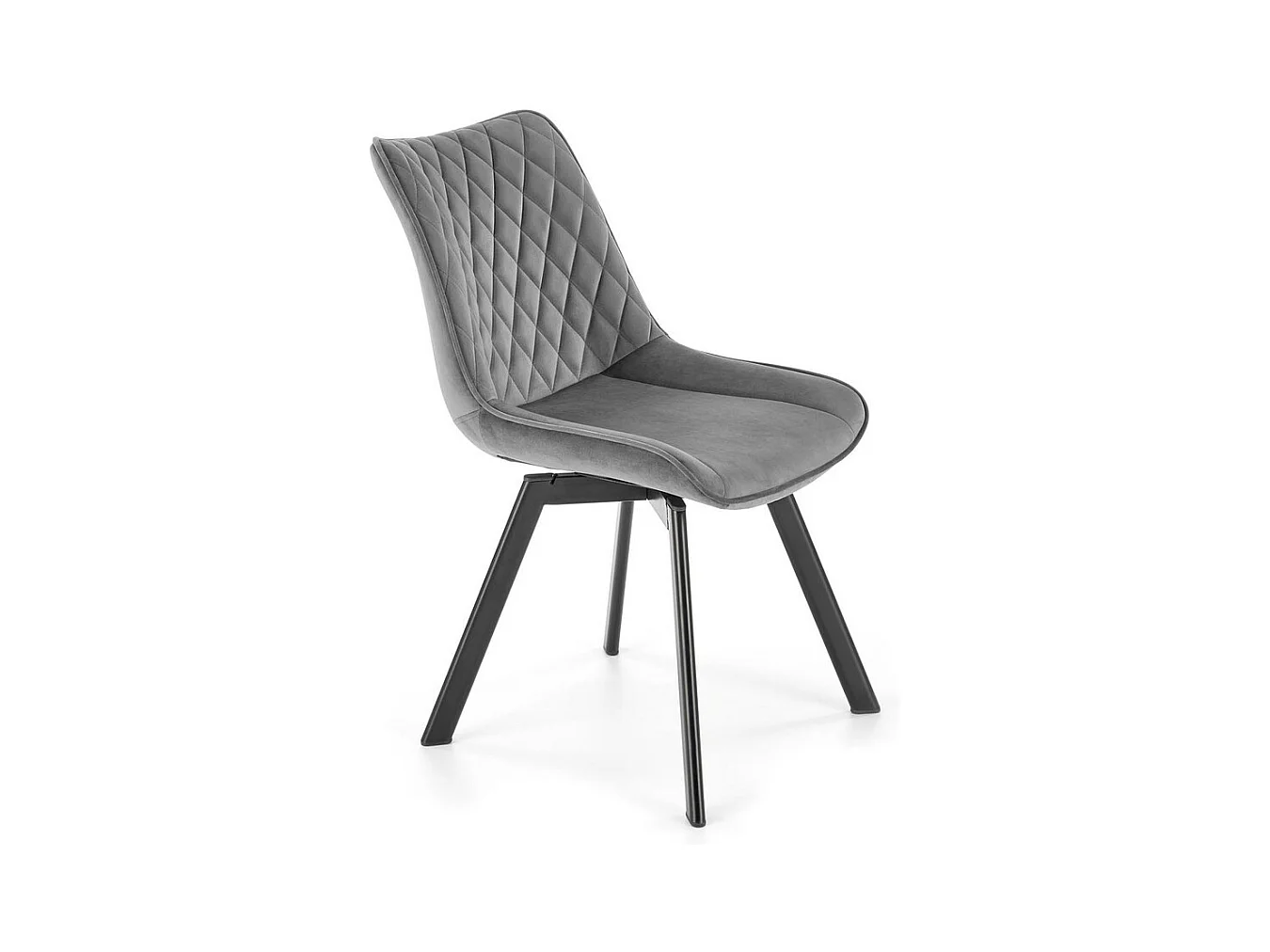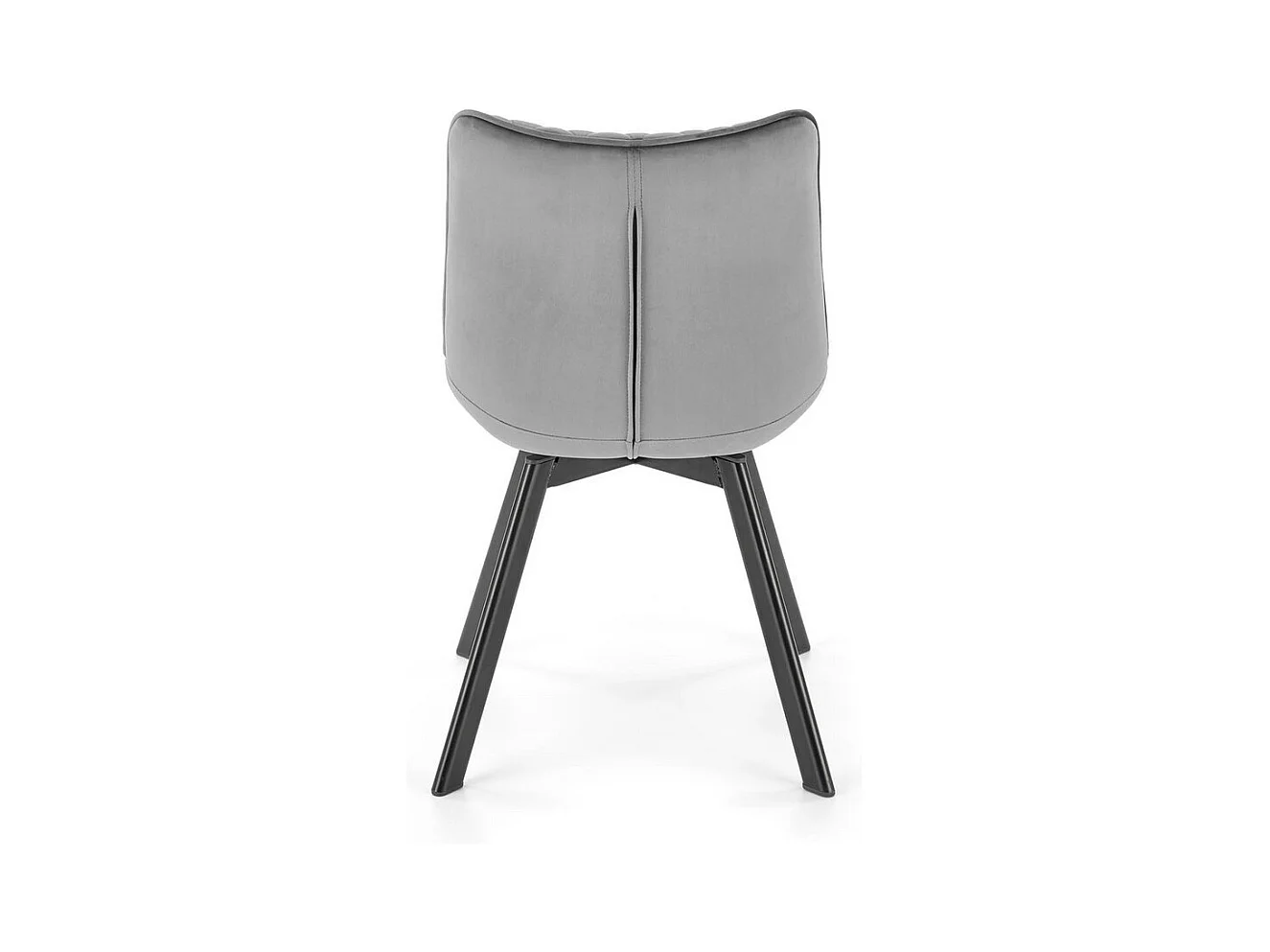 Silla de terciopelo gris con respaldo redondeado y patas de metal negro ERIKA