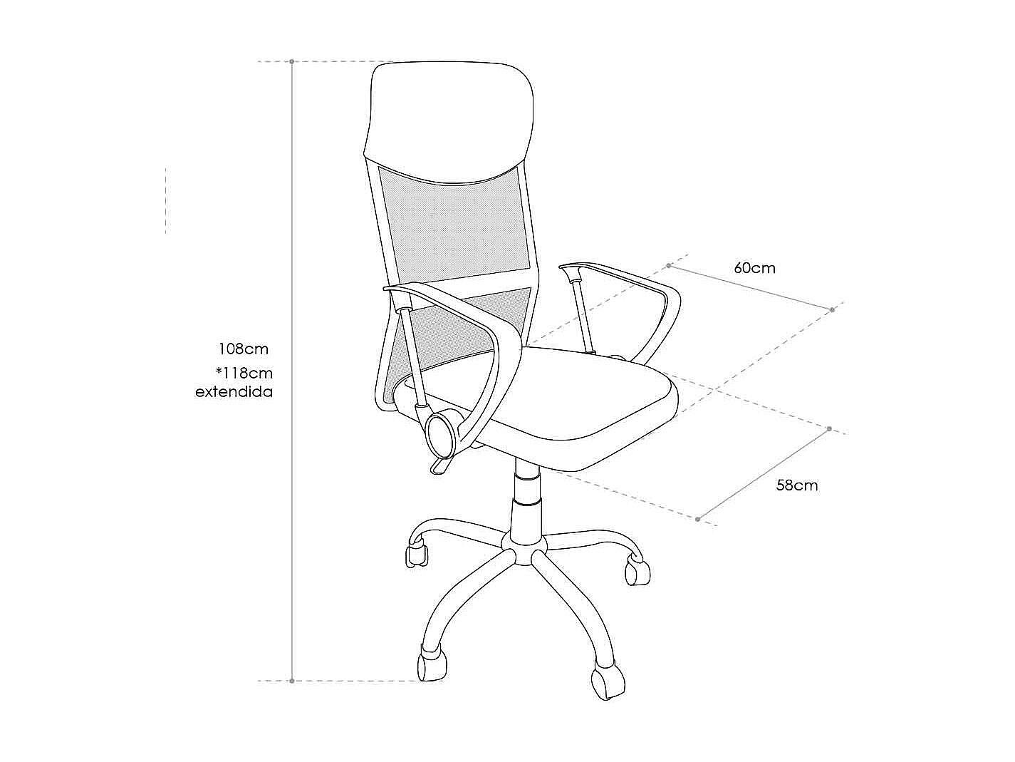 Silla de escritorio de 108-118x58x60 cm con asiento ergonómico en color gris Jasper