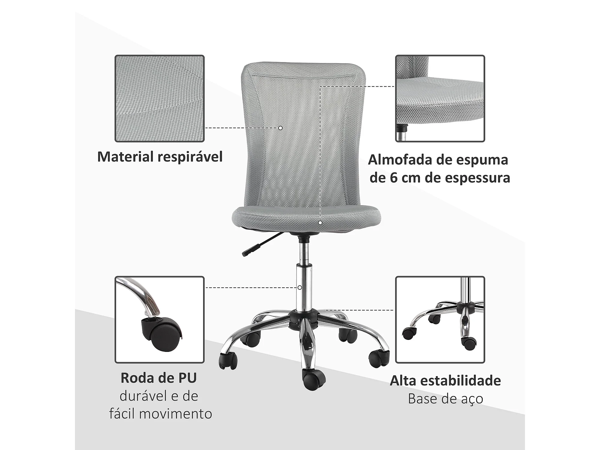 Silla de escritorio Licci Vinsetto giratoria gris 90-100x43x58 cm