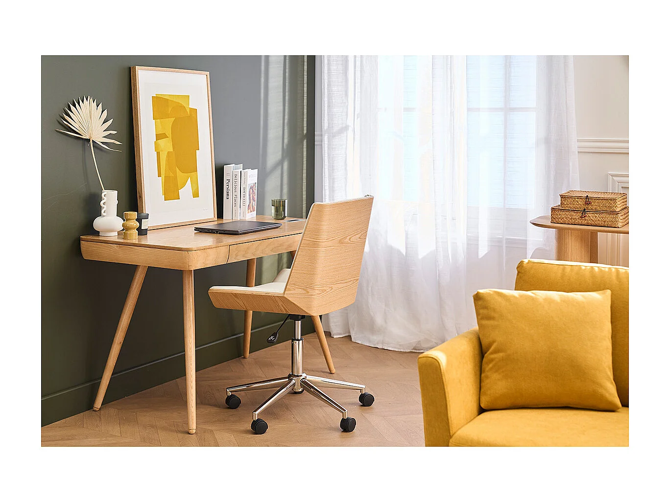 Silla de escritorio madera clara y blanca CURVED
