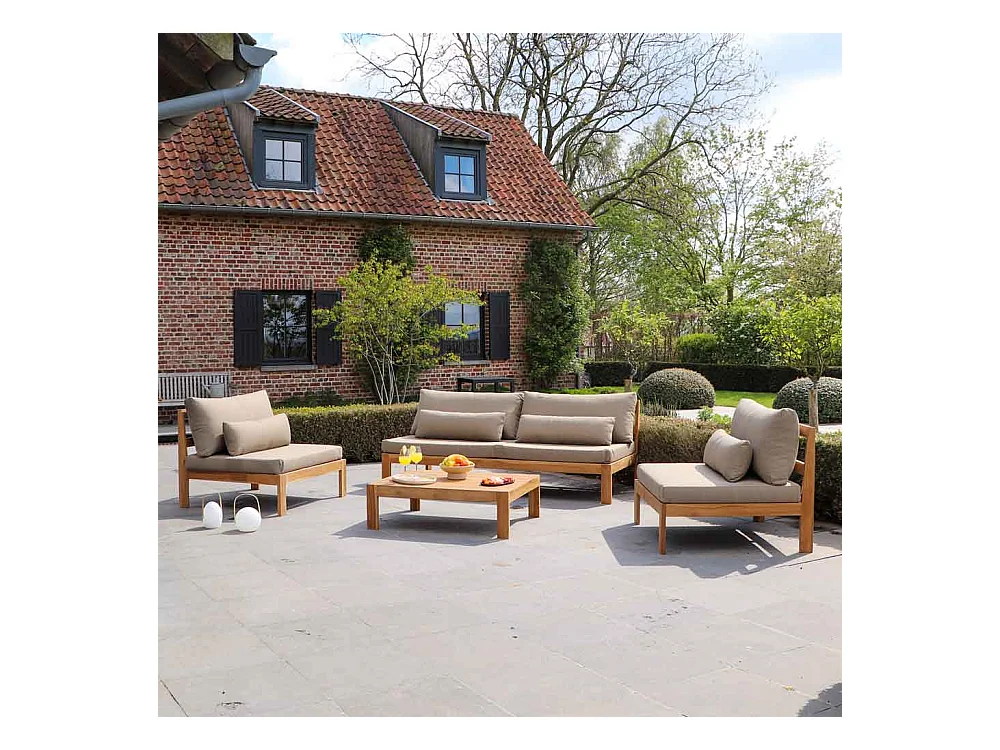 Sofá de jardín sin reposabrazos cojines de resina tejida beige