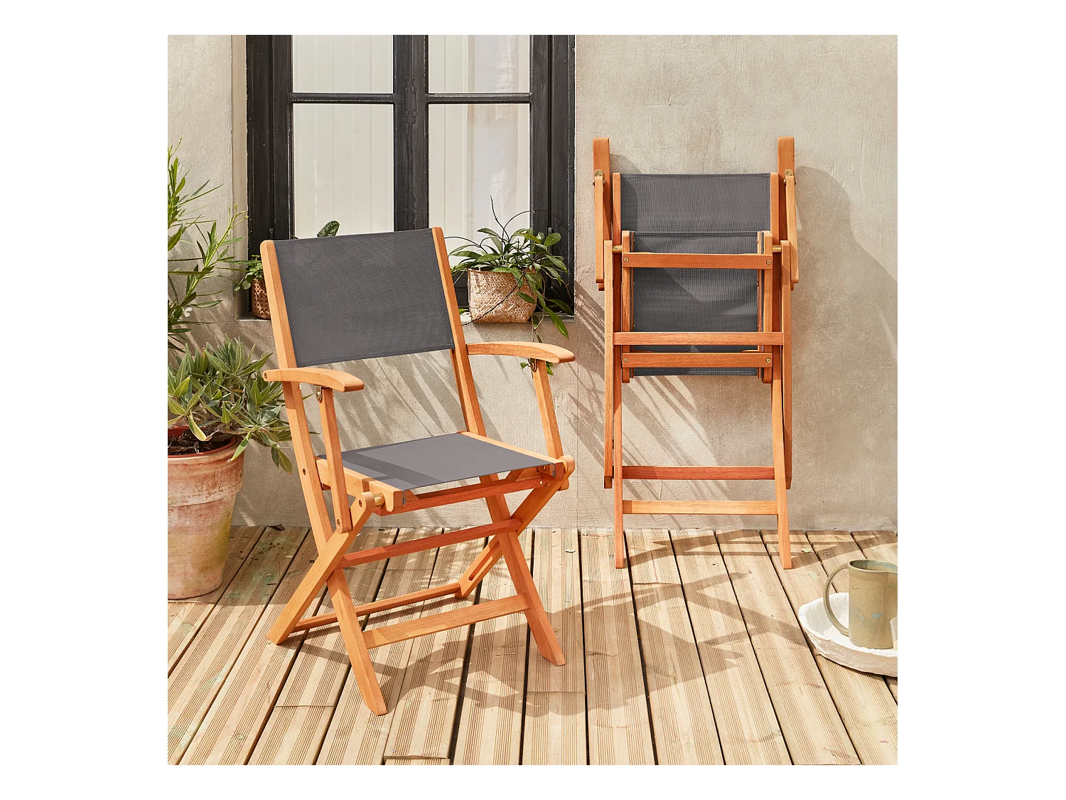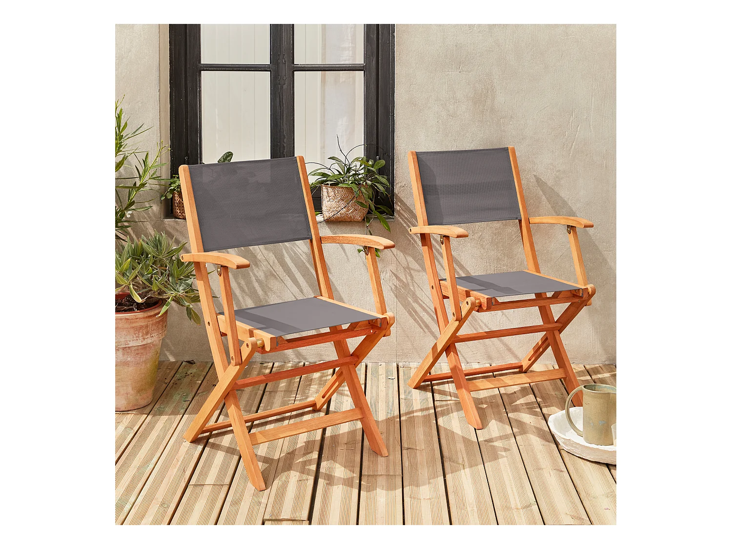 Silla de jardín plegable de madera de eucalipto, set de 2 antracita