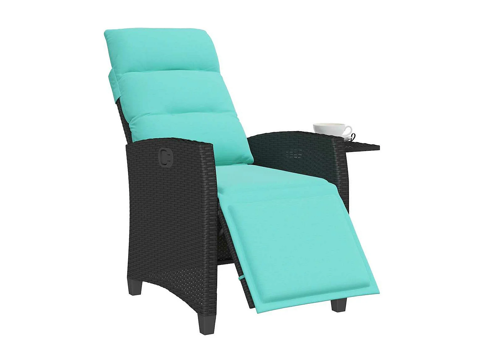 Silla de jardín reclinable con mesa auxiliar ratán negro