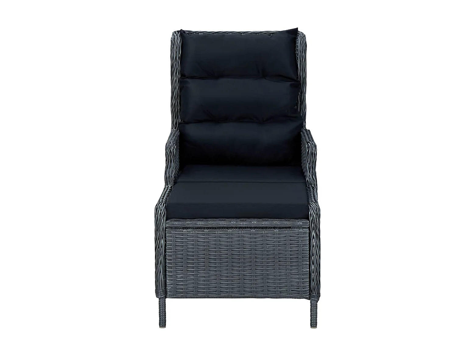 Silla de jardín reclinable y taburete de resina tejida gris oscuro