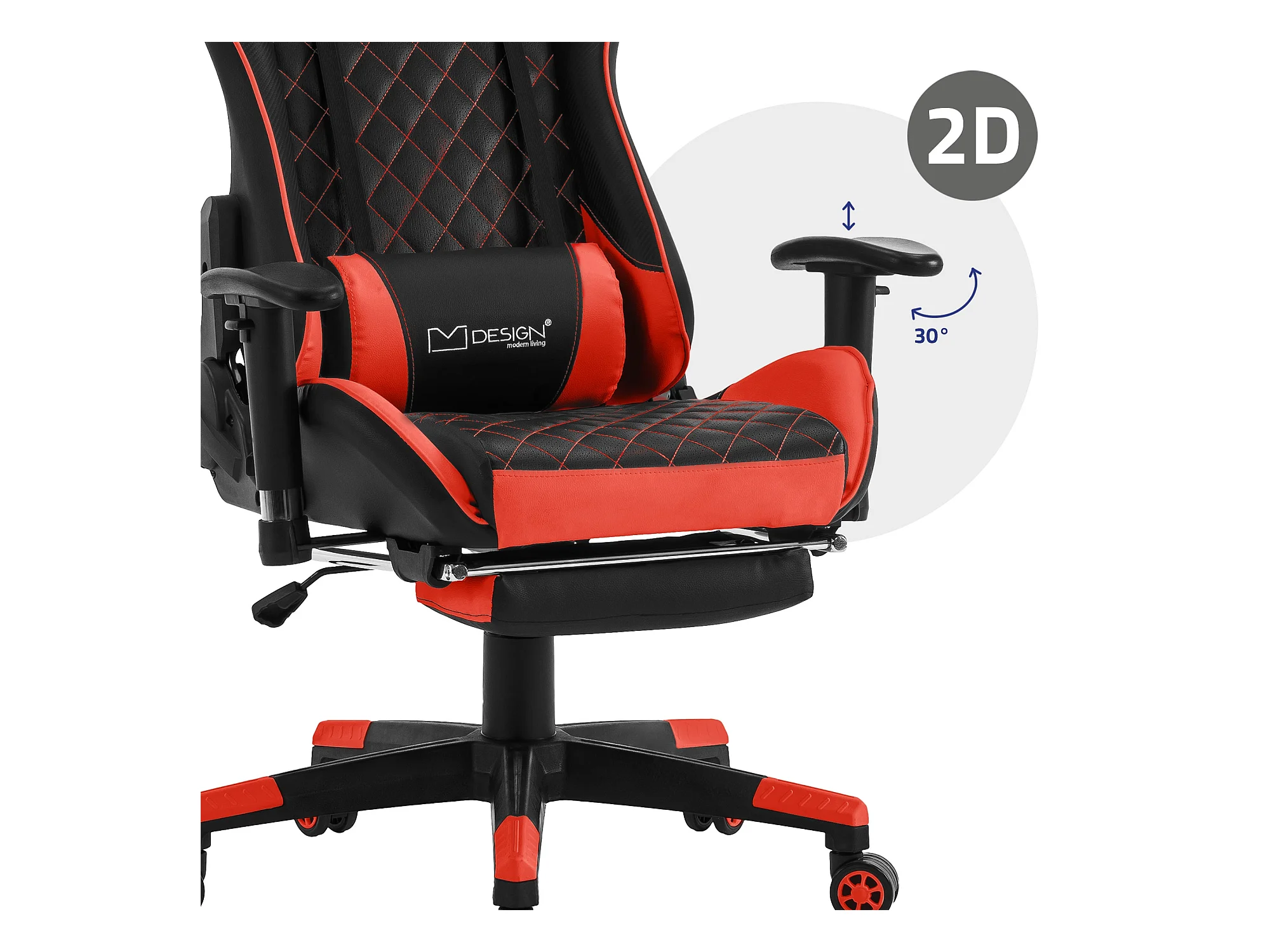 Silla gaming con reposapiés Negro y rojo Cuero artificial