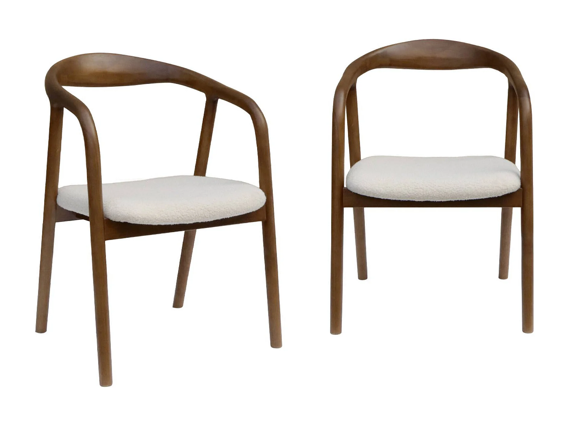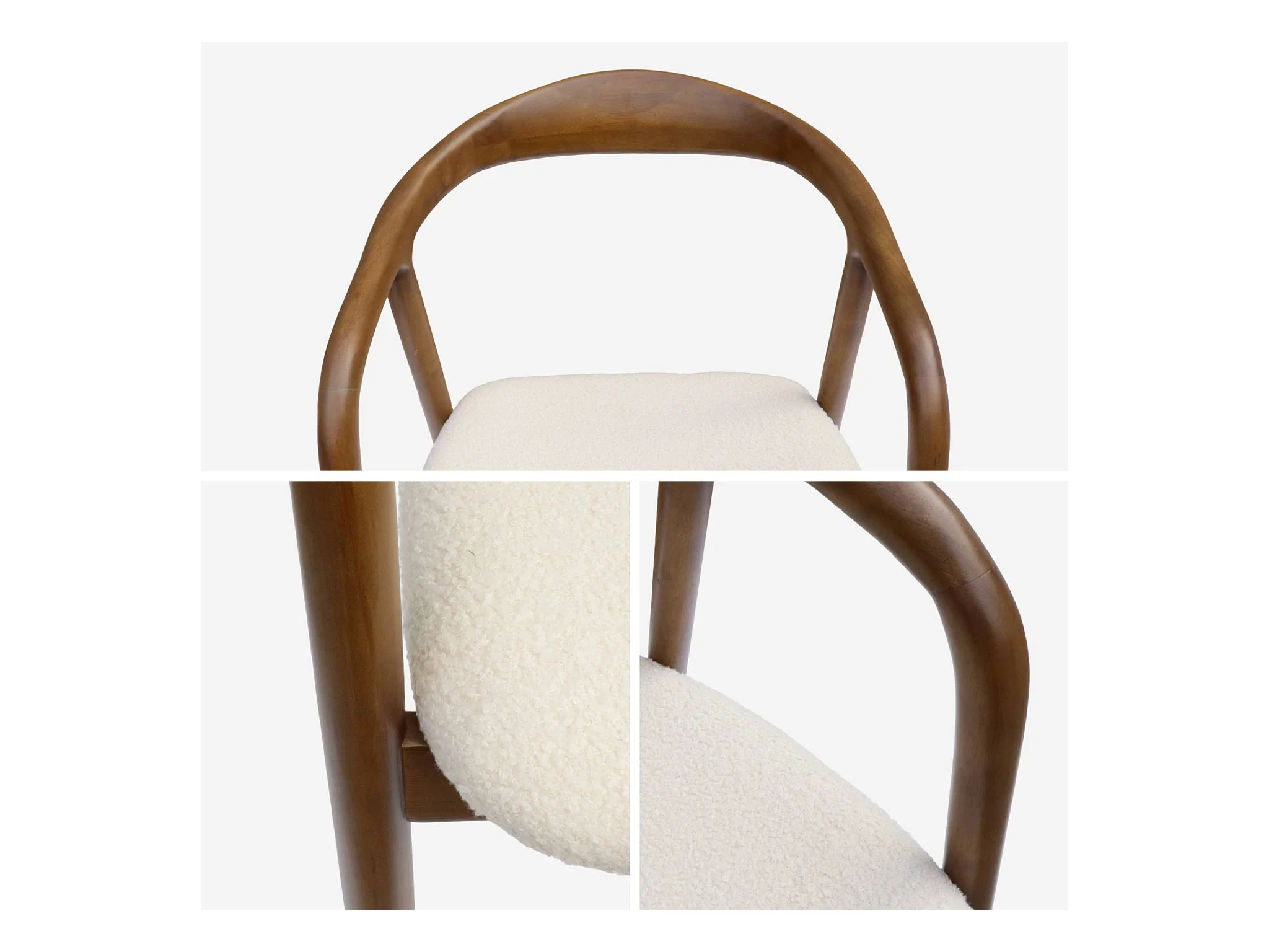 Silla de madera de hevea y borreguito, set de 2 nogal