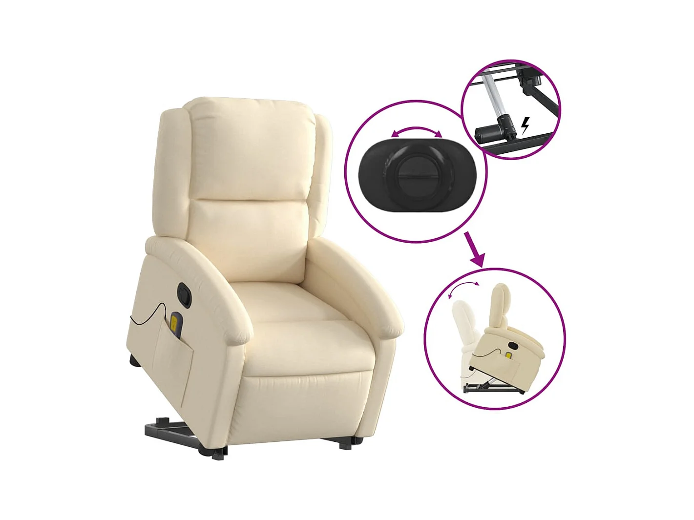 Sillón de relax | Sillón reclinable de masaje eléctrico elevable terciopelo crema SHL5721