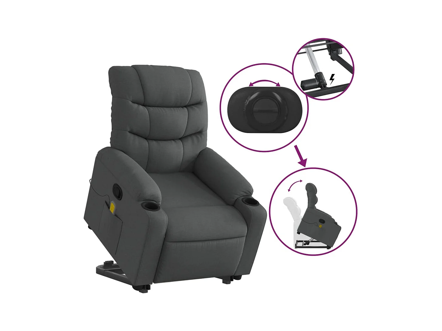 Silla de relax | Sillón eléctrico reclinable elevable de tela gris oscuro SHL6402