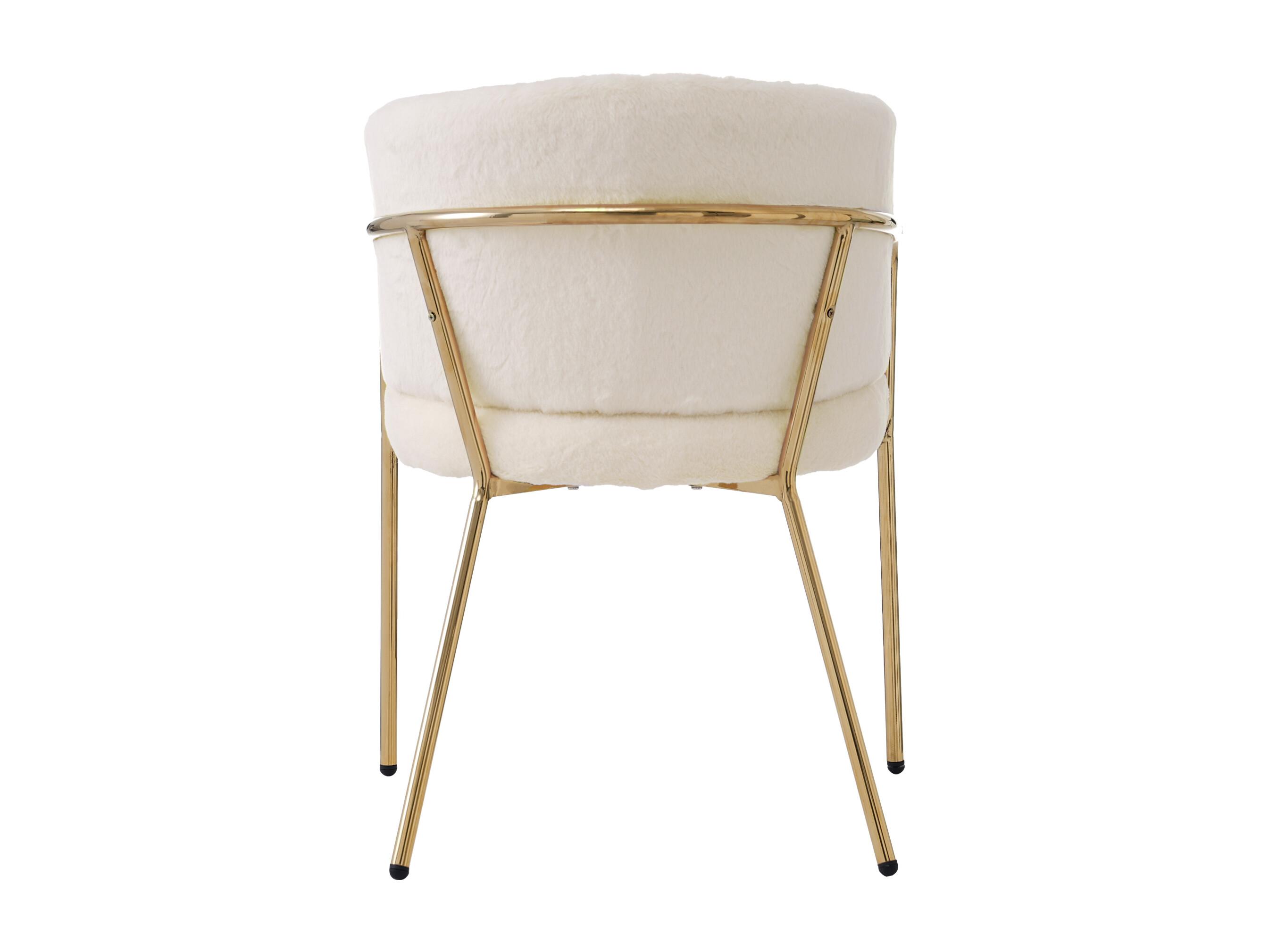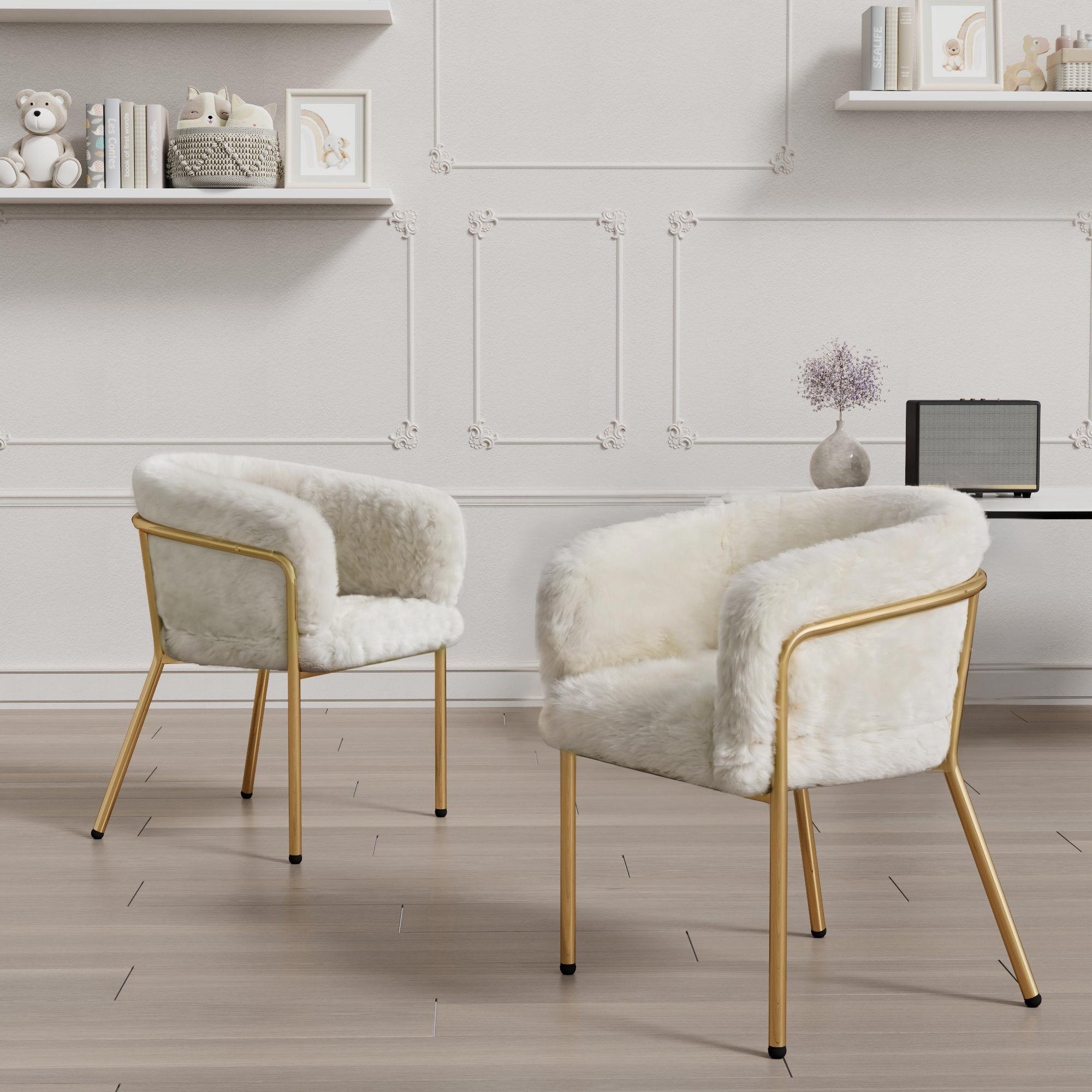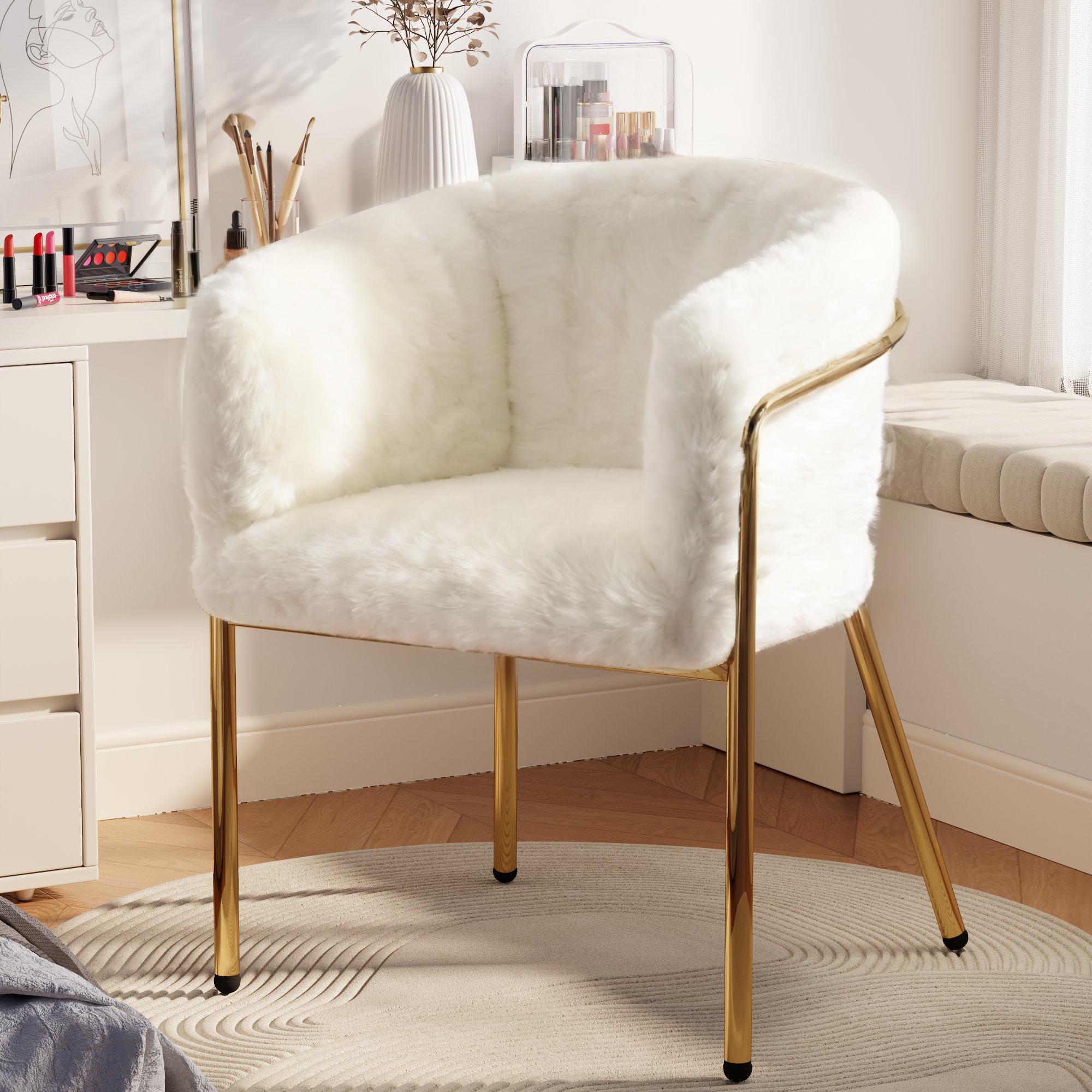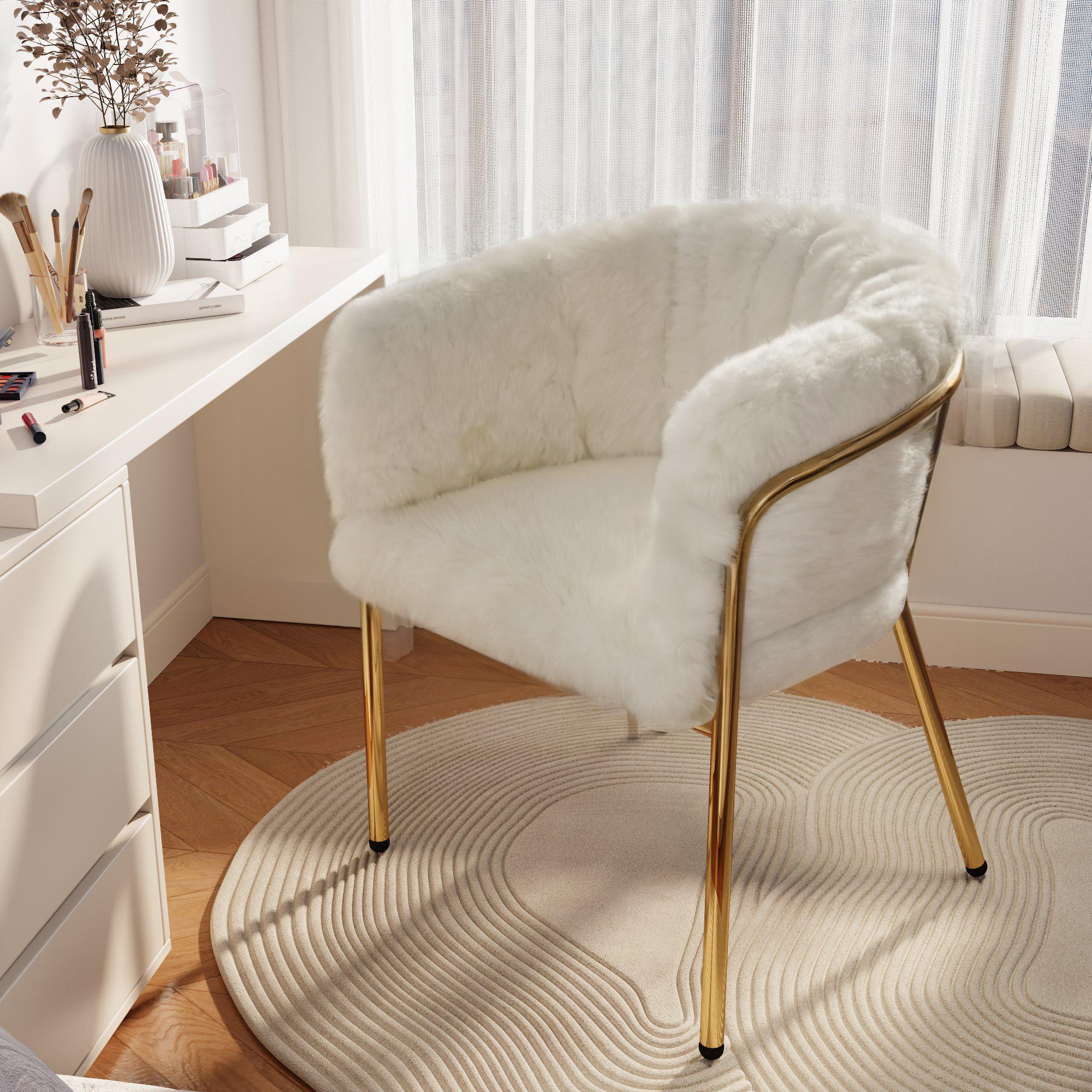 Silla de ocio beige con terciopelo sintético de conejo y patas de metal estables para sala de estar y dormitorio.