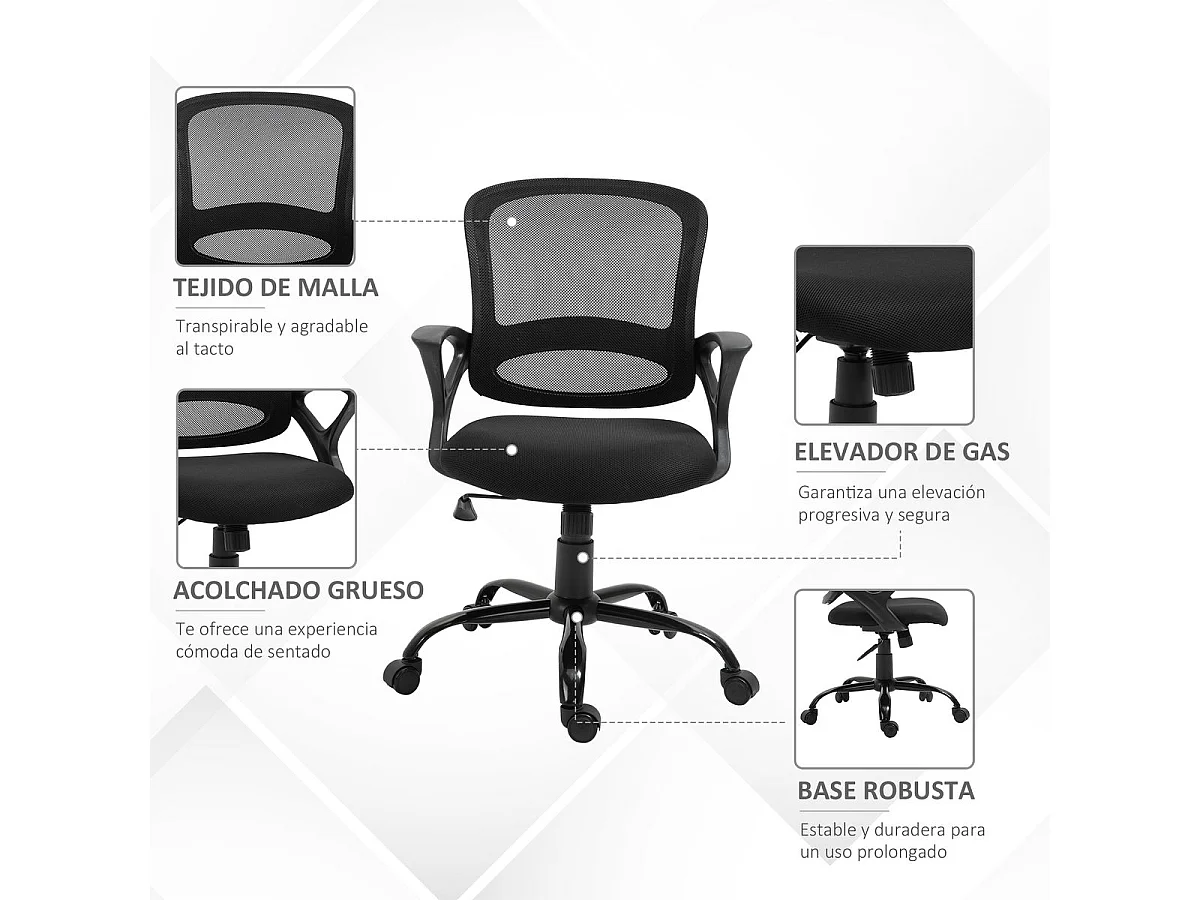 Silla de oficina negro 61x61x99 cm Vinsetto