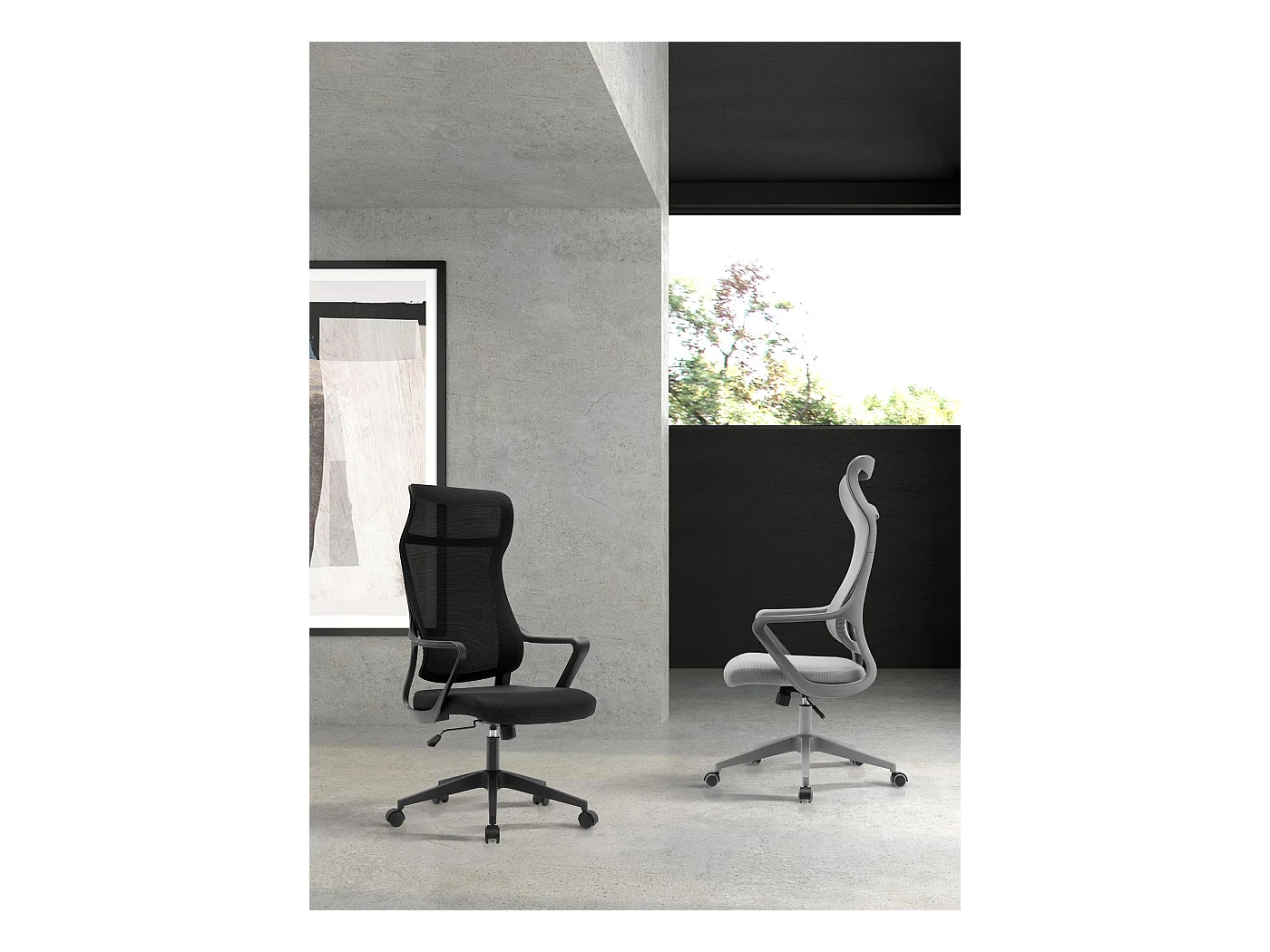 Silla de oficina Ryan malla respaldo alto con reposacabezas gris 112-120x64x64 cm