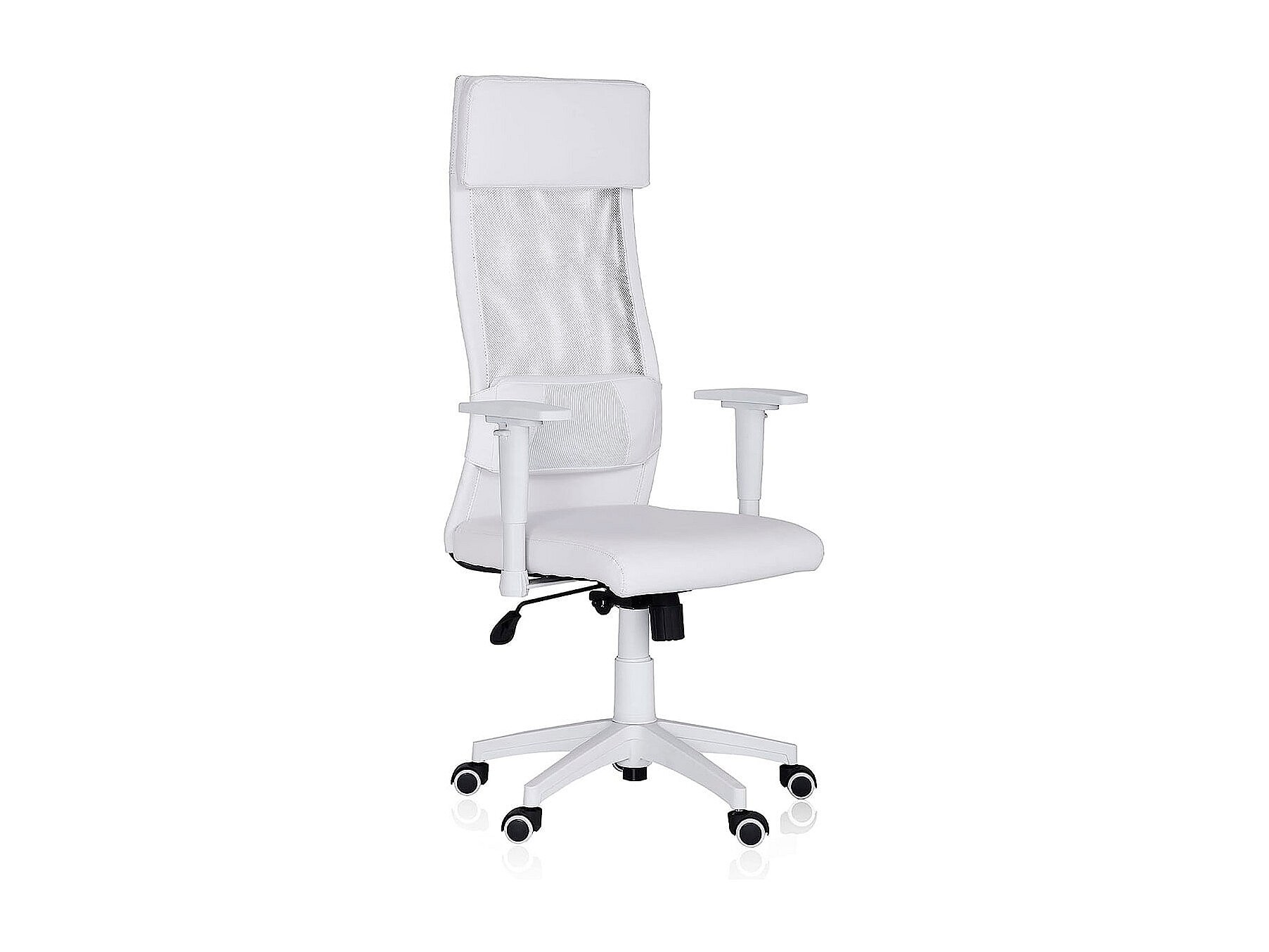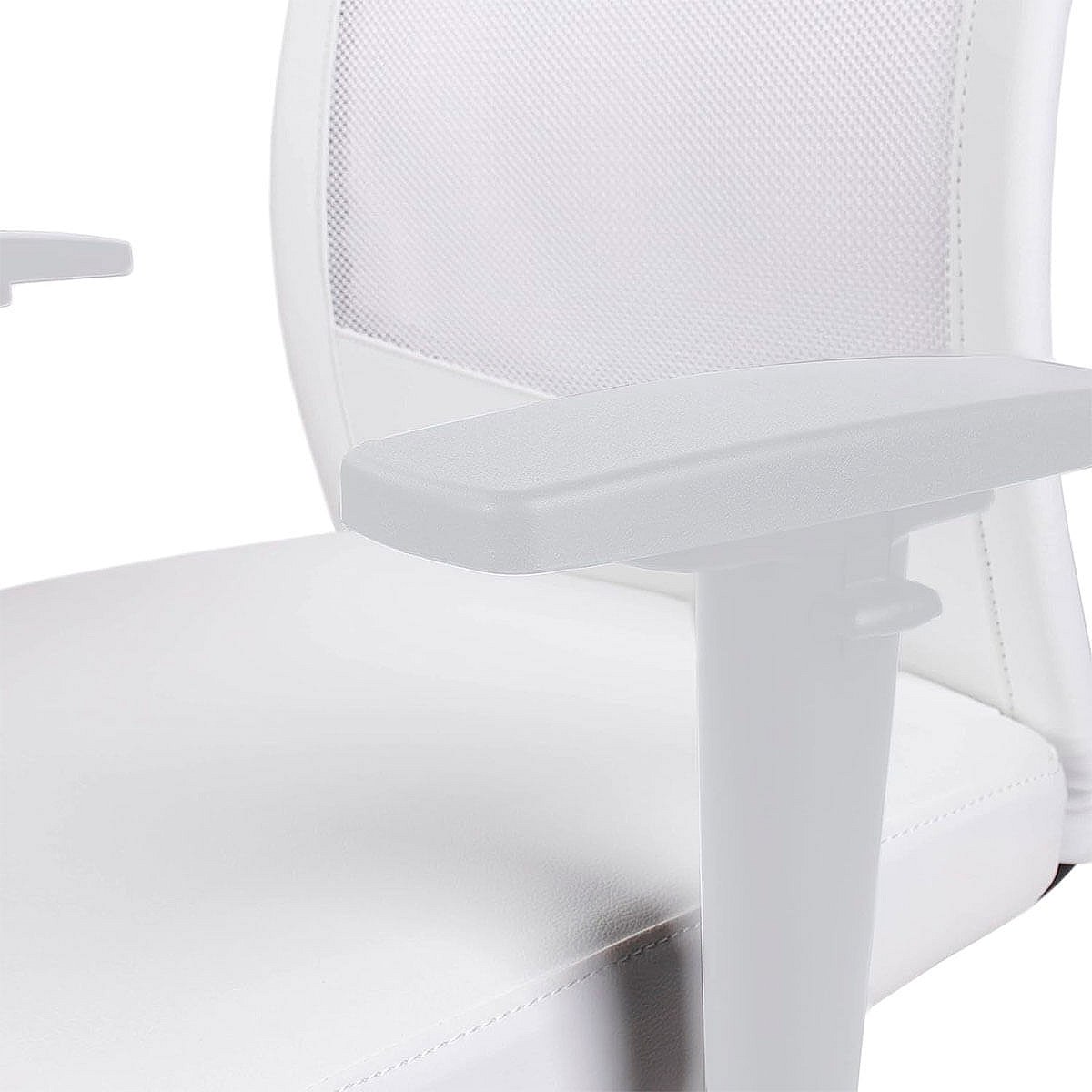 Silla de oficina ergonómica, piel sintética, color blanco, con regulación de altura (52,5 x 54 x 99 cm)
