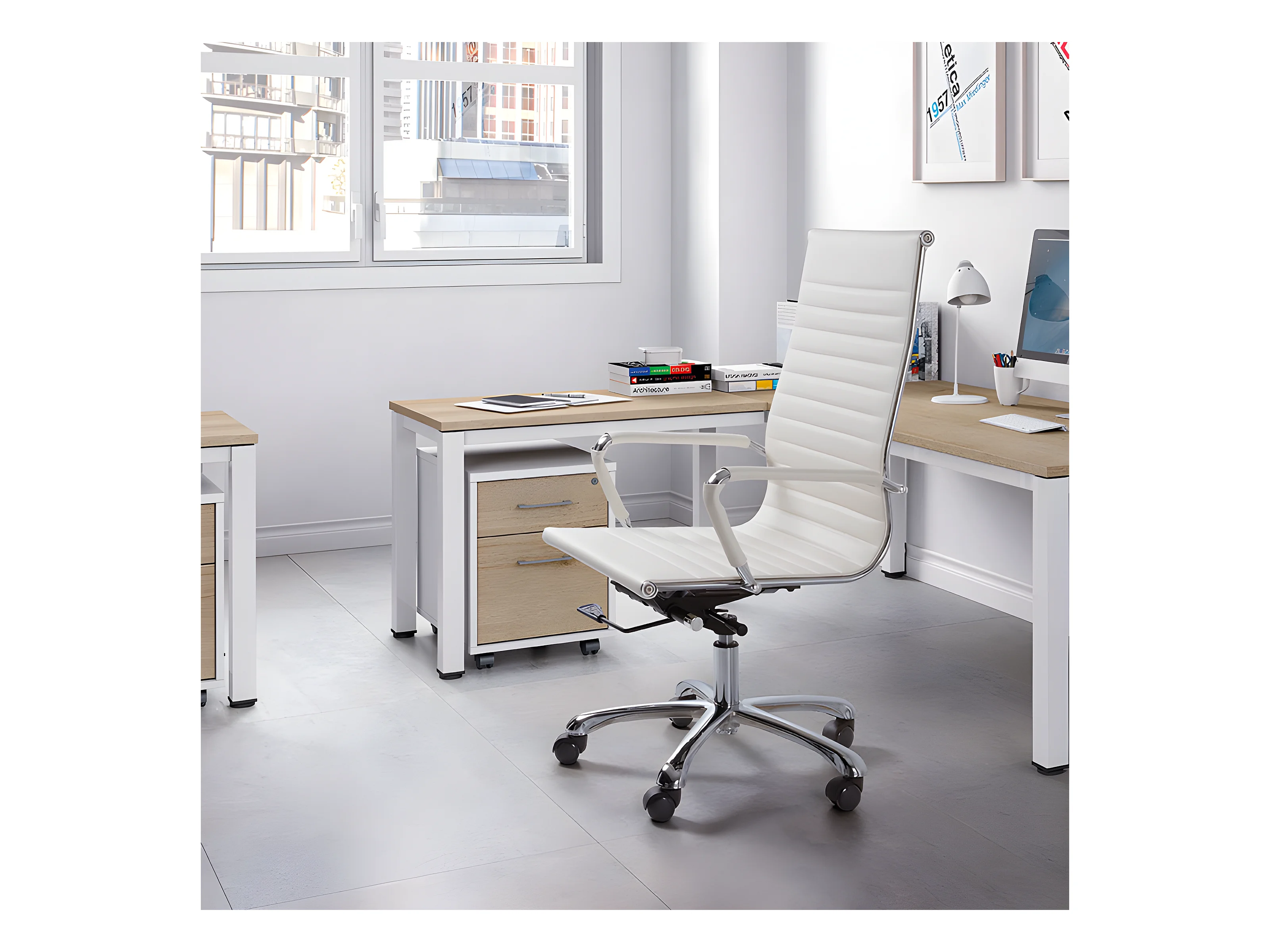 Silla despacho giratoria elevable acabado simil piel blanco, 58 cm(ancho) 90/97 cm(altura)