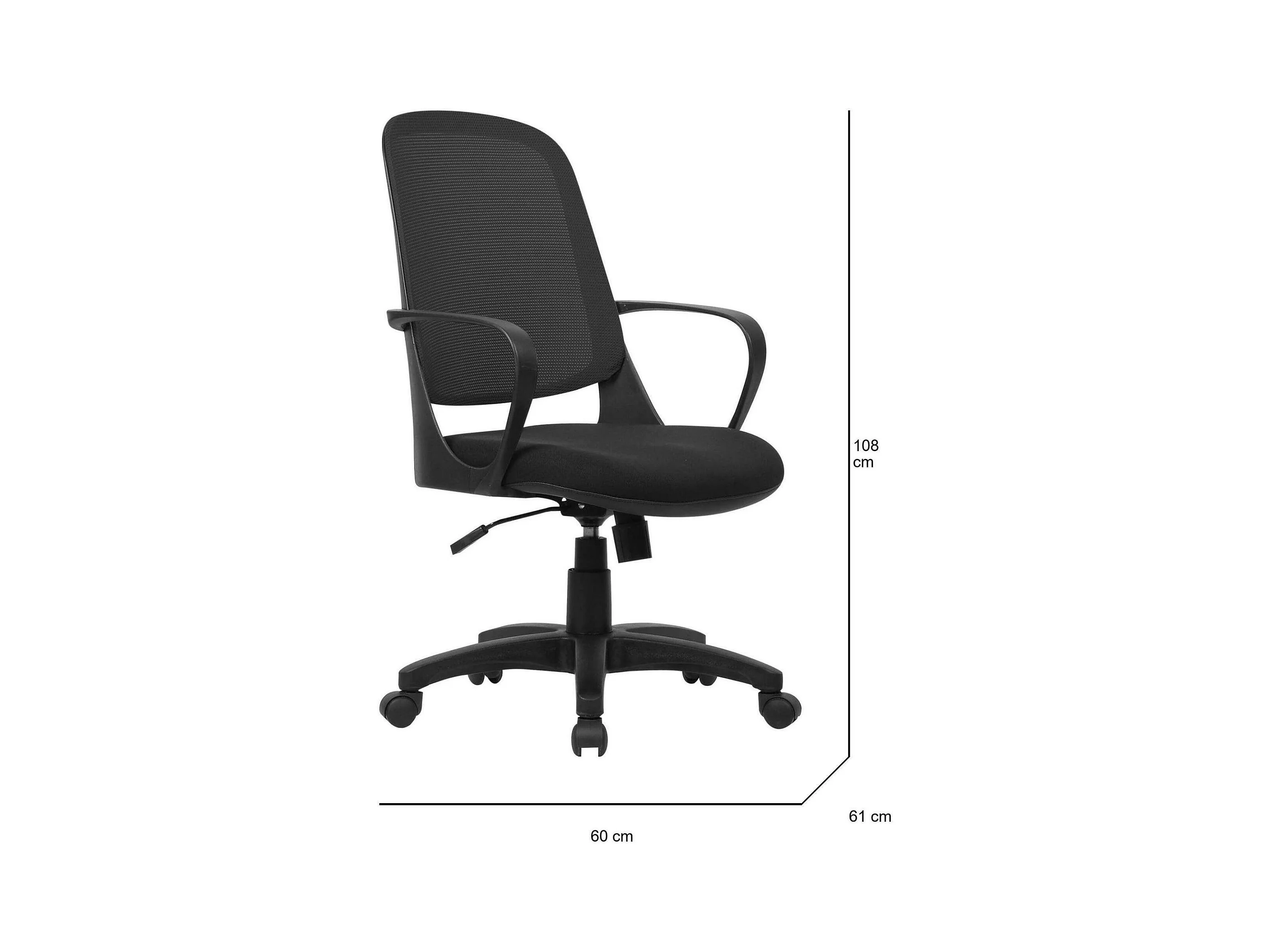 Silla de oficina Coffs, Silla operativa de malla con reposabrazos, Asiento de oficina ergonómico, 61x60h99/108 cm, Negro