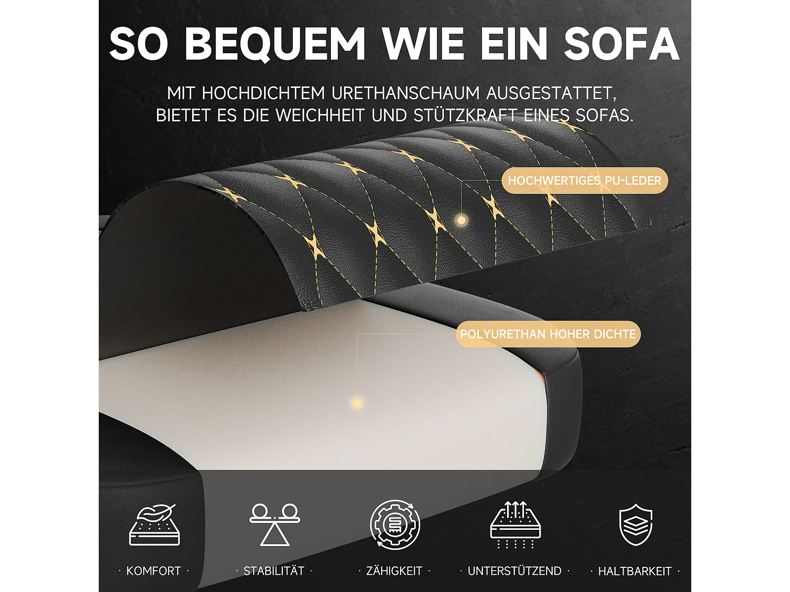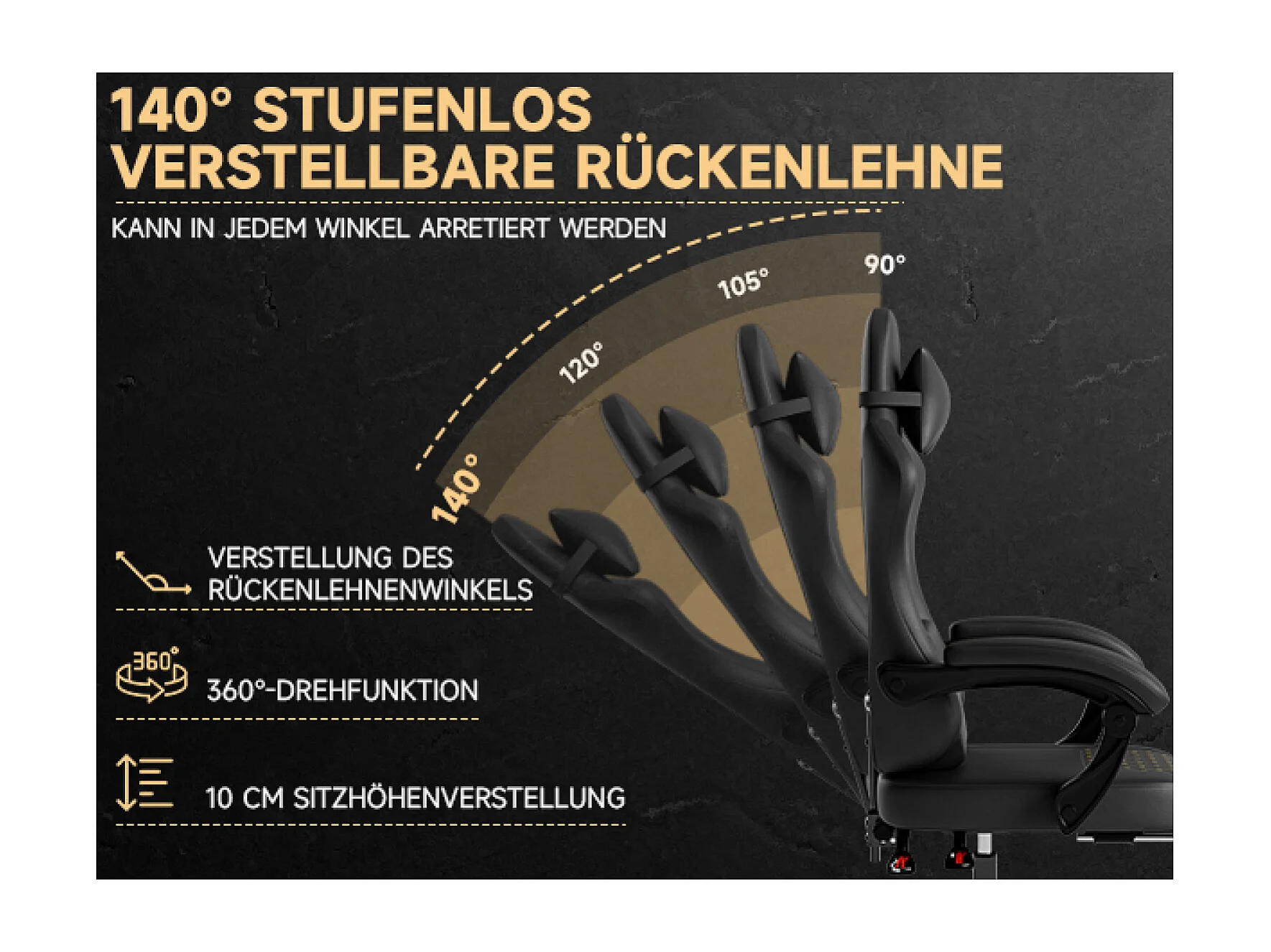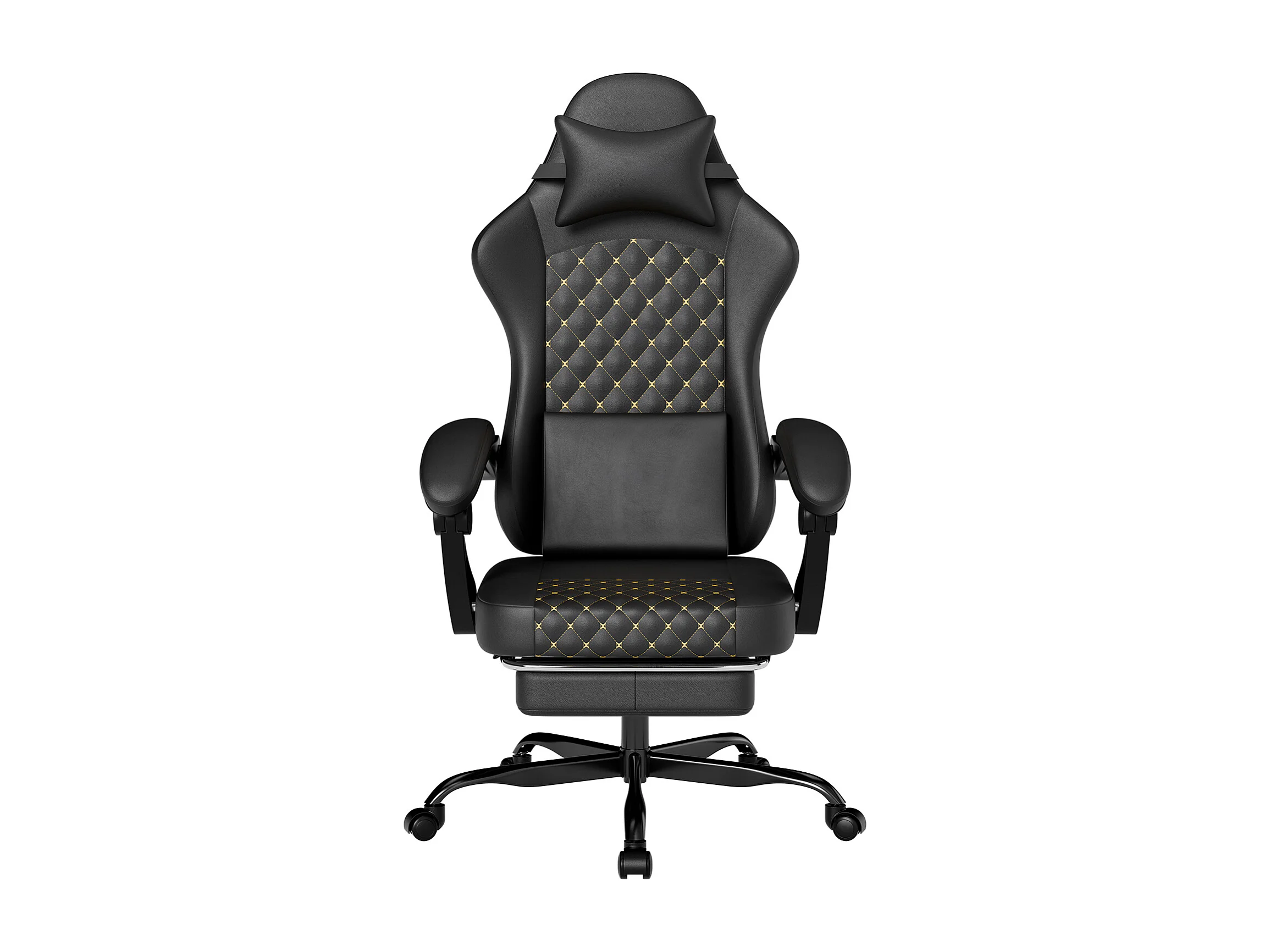 Silla de oficina inclinable 90/105/135° con reposapiés - Silla gaming de piel sintética - Negro